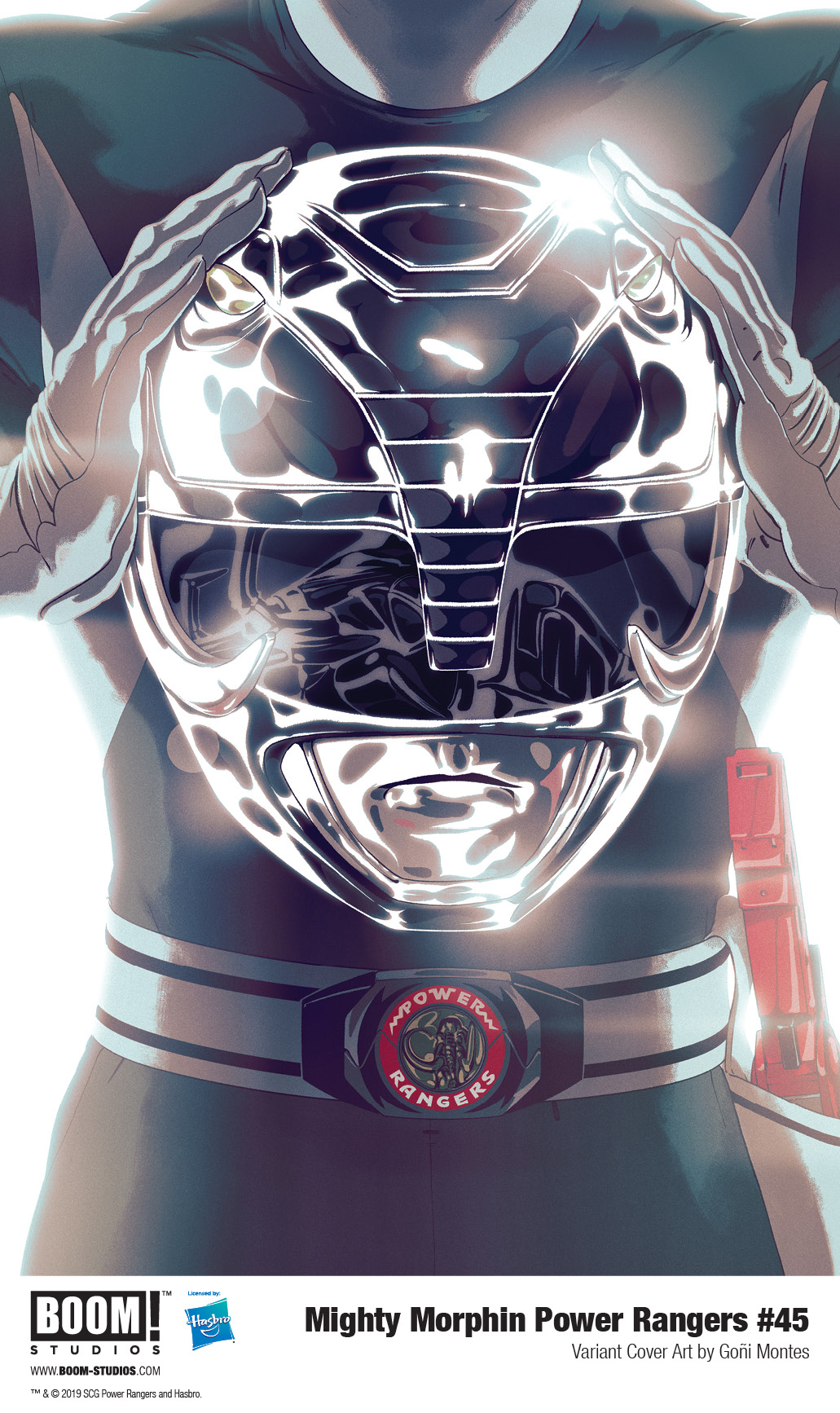 MIGHTY MORPHIN POWER RANGERS #45 features a main cover by Jamal Campbell (Naomi), as well as a special foil variant of the iconic Helmet Covers featuring the Black Ranger by fan favorite artist Goñi Montes (Sandman Universe), a collectible Trading Card variant cover by Kris Anka (Runaways), an exclusive Story Variant cover written by Ryan Parrott and illustrated by Dan Mora (Buffy the Vampire Slayer), and more!