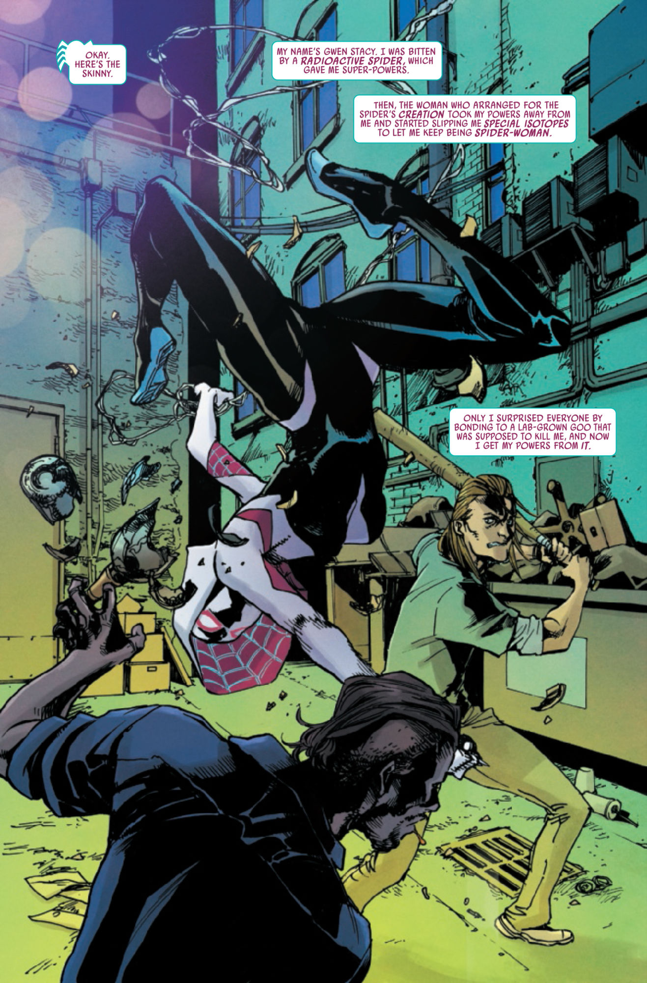 After unmasking herself, waging a war for the fate of the Multiverse and nearly losing her father, Gwen Stacy has had a rough year…and it's not about to get any easier! ESPECIALLY when something's started going wrong with the mysterious suit that gives her her abilities. With no other choice, Gwen finds herself swinging through the skies of the Marvel Universe alongside special guest stars SPIDER-MAN and SPIDER-MAN, and finally embracing an all-new codename! We'll give you three guesses…