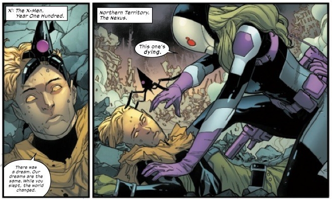 …so in the first issue, they label the hundred-year timeline as X1 at one point when they meant X2. FiX it in the trade…