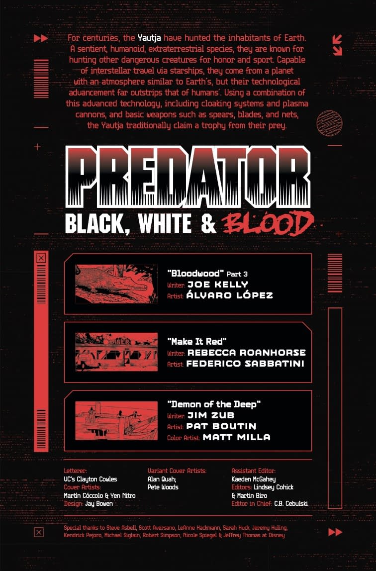 - Predator: Black White and Blood #3 features deadly hunts in the Australian outback and atop Mt. Everest.