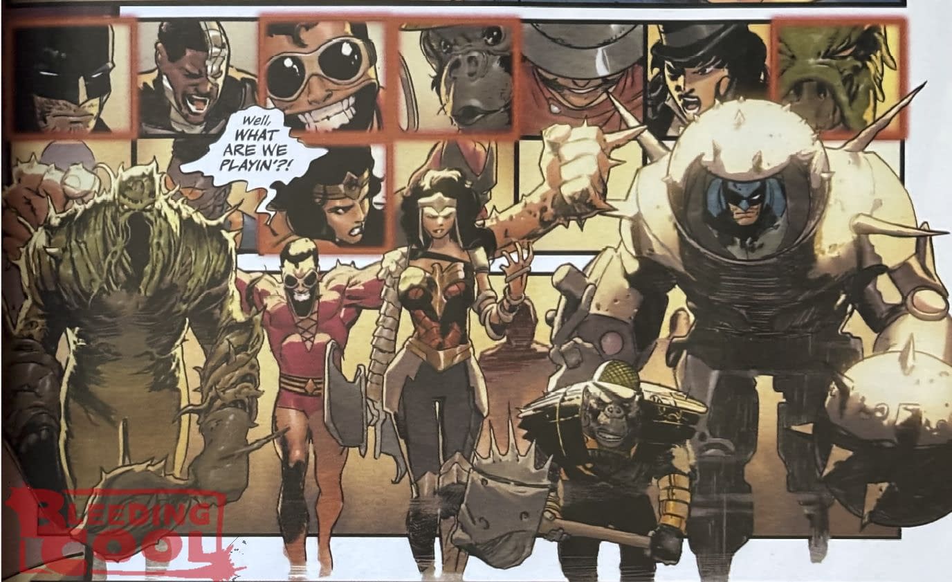 Scott Snyder previously talked about DC's K.O. just being a big fight between characters, for a purpose, but without the ideological lines of a Civil War. "So it's almost like the first time that we've gotten to do a big fight event. Marvel's done them a bunch. You have Avengers vs. X-Men, Secret Wars, Civil War. But I realised, like, we haven't actually done almost any of them. So for us, this is our knock-down, drag-out fight. But it's done in a way that isn't meant to be grim. It doesn't really hit them against each other in a way that has fault lines over deep issues. It is supposed to be something that you can enjoy. It has a very personal message, which I think will become apparent as you get closer to the end. So it's not just some kind of big escapist bubblegum thing. It's very much about what I think these superheroes are meant to stand for and represent to us, especially in difficult times. But it is coded in 10 layers of bloody candy fun. Out of control, violent candy fun. No edgelord bullshit. It is PG-13 in its own way. We'll have some red band issues, but overall, it is really supposed to get you that kid joy of Saturday morning cartoons on steroids. Who will win? That fun. Get you into stores."