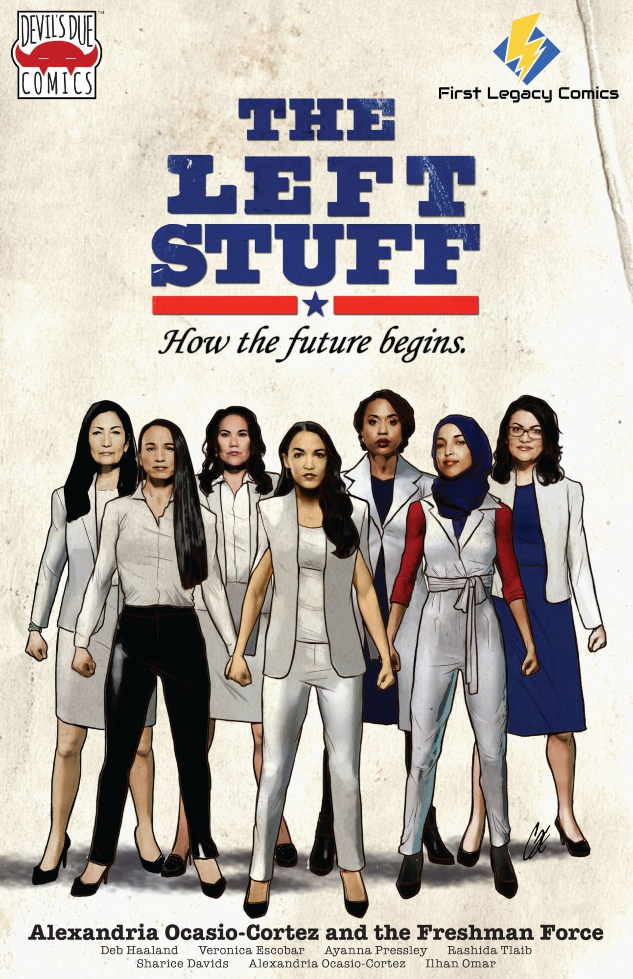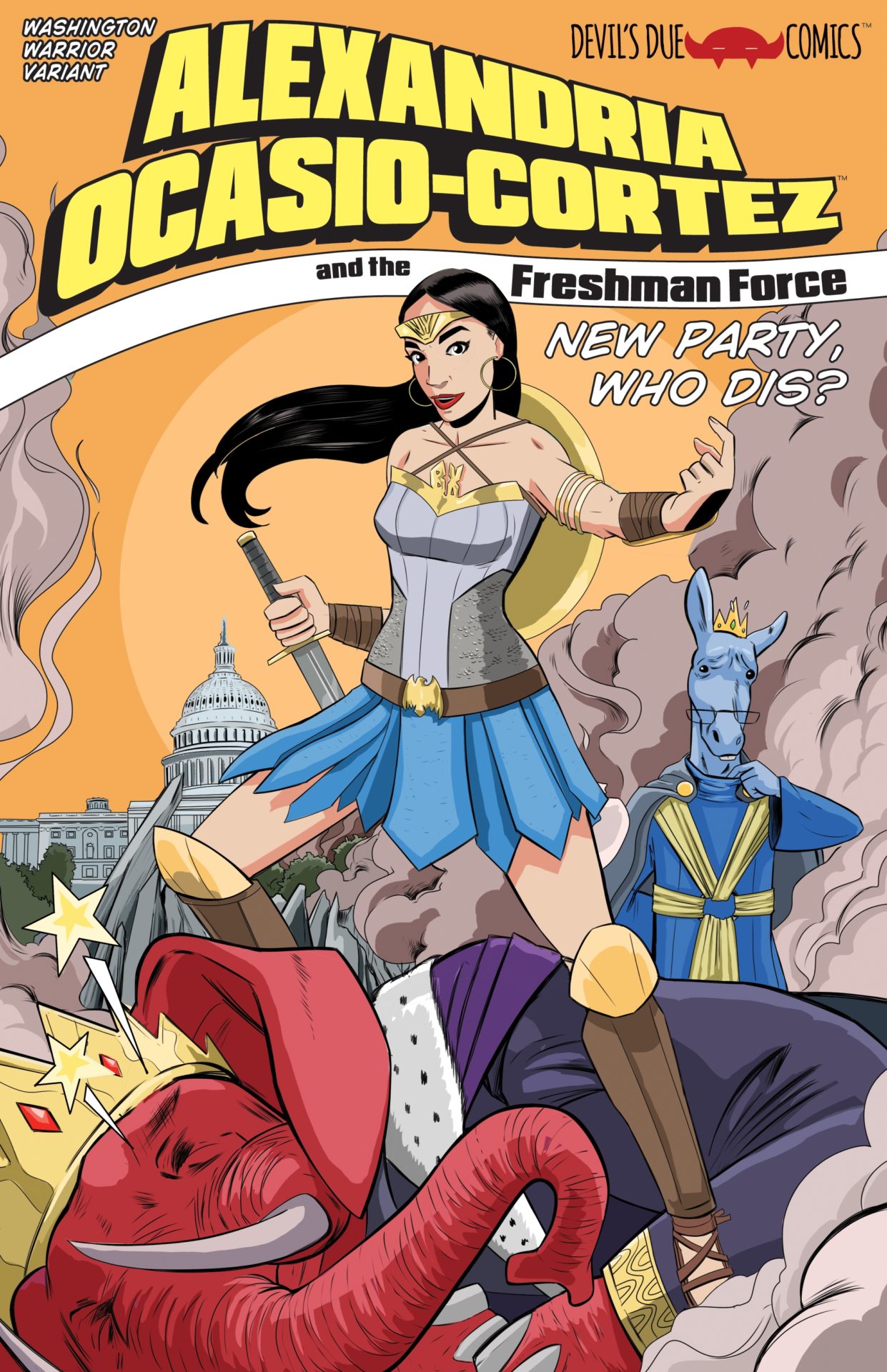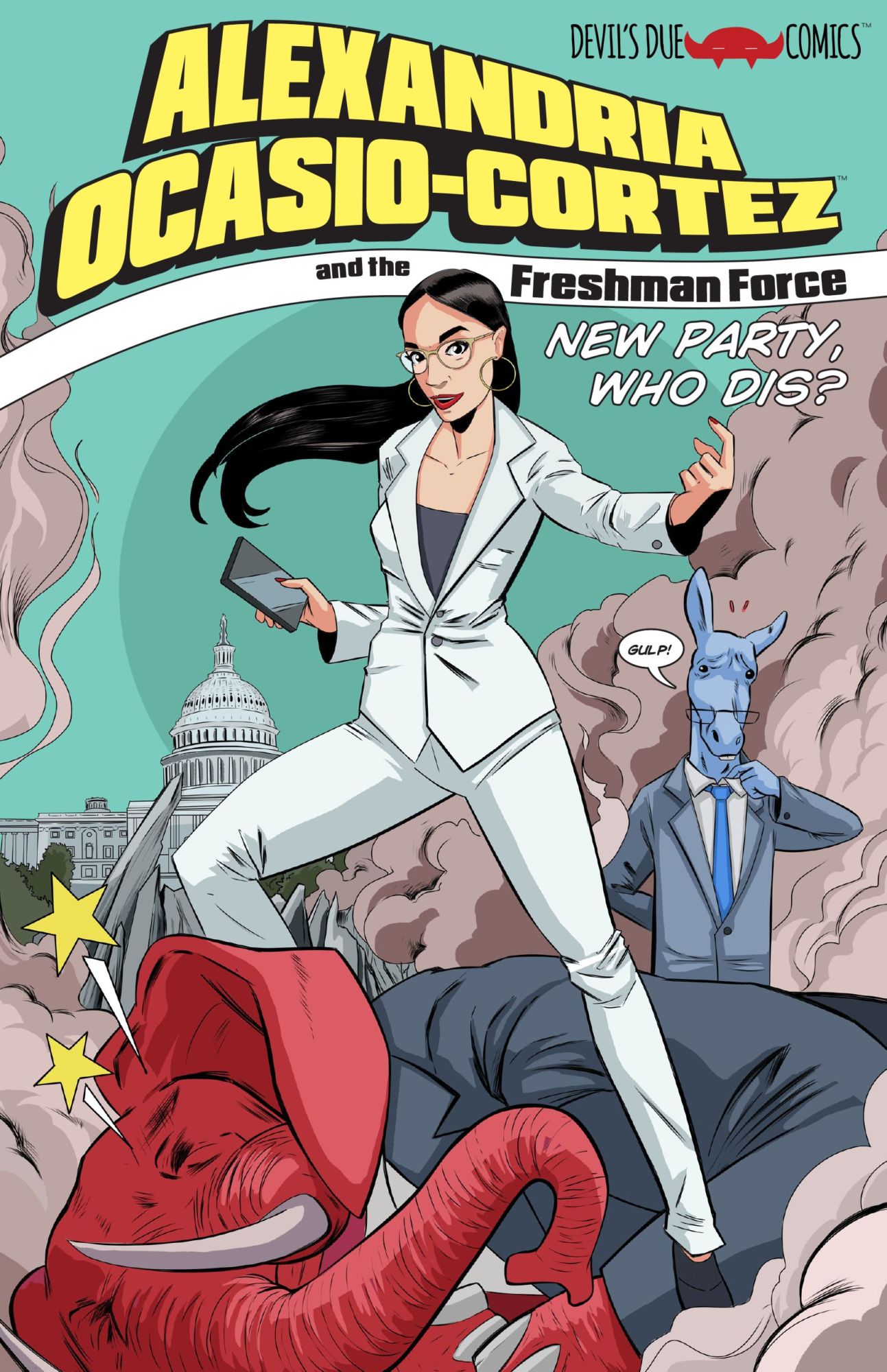Tomorrow sees the much-anticipated release of Devil Due's latest political parody comic book, Alexandria Ocasio-Cortez and the Freshman Force: New Party Who Dis? from creators including Josh Blaylock, Dean Haspiel, Pat Shand, Shawn DePasquale, Christa Cassano, Hoyt Silva, Jill Thompson, Nick Accardi, Travis Hymel, Marguerite Dabaie, Peter Rostovsky Jose Garibaldi, K. Lynn Smith, Kit Caoagas, Larry Watts, Bob Sikoryak, Adam McGovern, Elizabeth Marley Kim, Jason Goungor, Sherard Jackson, Jeffrey Burandt and Sean Von Gorman and Tim Seeley. And Bleeding Cool has a glimpse ahead… as well as all the exclusive variant covers from specific stores, and where to get them.