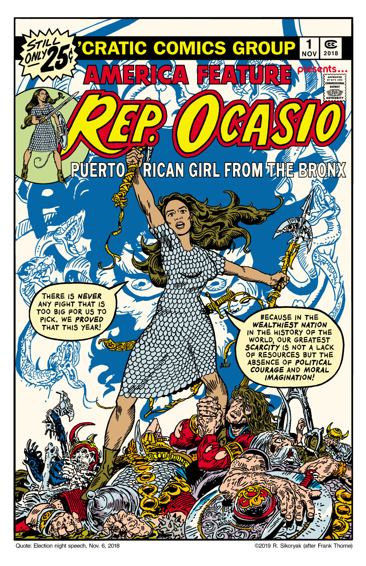 It's Alexandria Ocasio-Cortez and the "Freshmen Force" (of Congress) vs. the establishment in this all-new special! Comic creators converge to celebrate the election of the most diverse group of freshman Representatives in history, and spare no-one in this satire that takes aim at Washington. From the house that brought you Barack the Barbarian! Featuring comics from various artists and bonus activities and games.In Shops: May 15, 2019