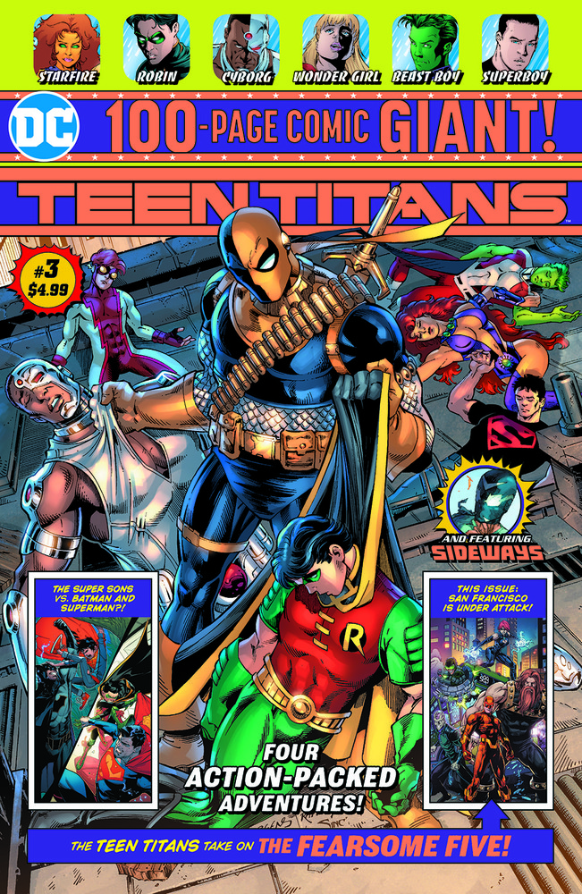 Arriving with the Batman Giant is issue #3 of the Teen Titans Giant, featuring "Enter… The Disruptor," a new chapter of the original six-part Teen Titans story by Dan Jurgens (BATMAN BEYOND, GREEN LANTERNS) and Scot Eaton, plus more from from Geoff Johns' version of the Teen Titans from The New 52 (with art by Mike McKone), Peter J. Tomasi and Jorge Jimenez' Super Sons from REBIRTH and New Age of Heroes Sideways, by Kenneth Rocafort, Dan DiDio and Justin Jordan.