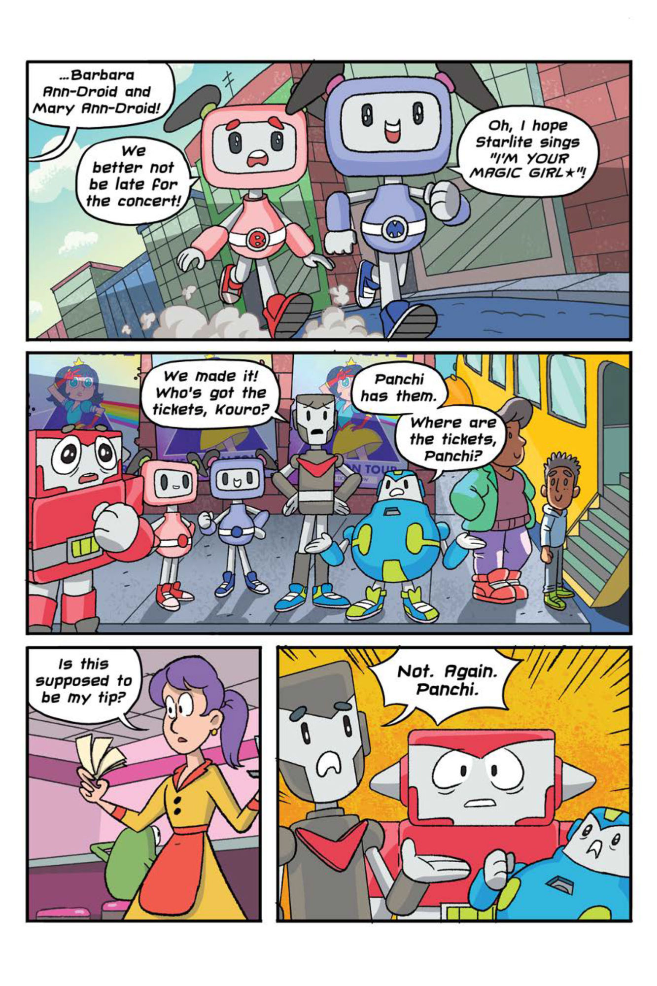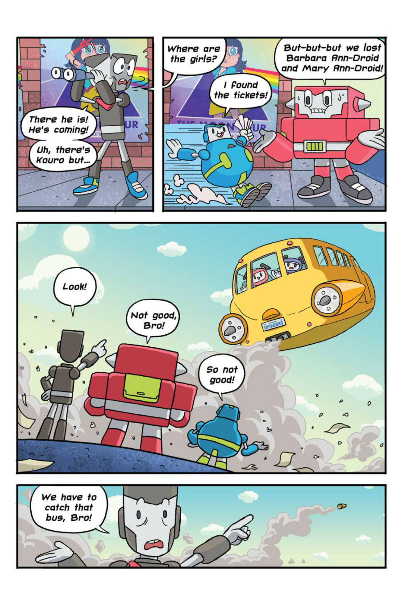 Quality over quantity; that's Oni Press's motto this week, as the publisher is releasing just one comic in stores on August 15th, the all-ages BroBots Vol. 3: BroBots and the Shoujo Shenanigans, by J. Torres and Sean Dove. It's $12.99 for this 40 page book, so it's understandable that you'd want to see it before you buy it, so check out the preview below: