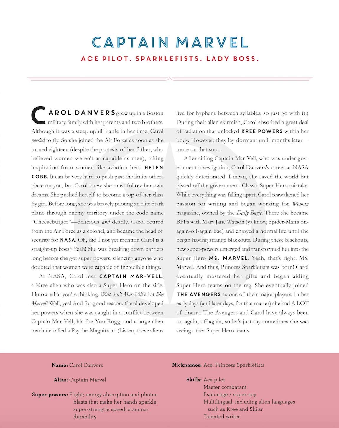 This is the Marvel Universe. Where the personalities, powers, and straight-up legends of countless heroic women have captured readers for generations.This unique book is the perfect start-or addition-to any Marvel fan's collection! Using her in-depth knowledge and passion for Super Heroes, Lorraine Cink explores the lives of the exceptional and diverse women of the Marvel Universe. Filled with inspirational lessons and clever observations, each section digs into what these relatable women can teach us all about growth, bravery, and the true meaning of strength. Paired with over one hundred original, vibrant, and emotive illustrations from the talented Alice X. Zhang, this book balances the responsibility and the fun the comes with being a hero.