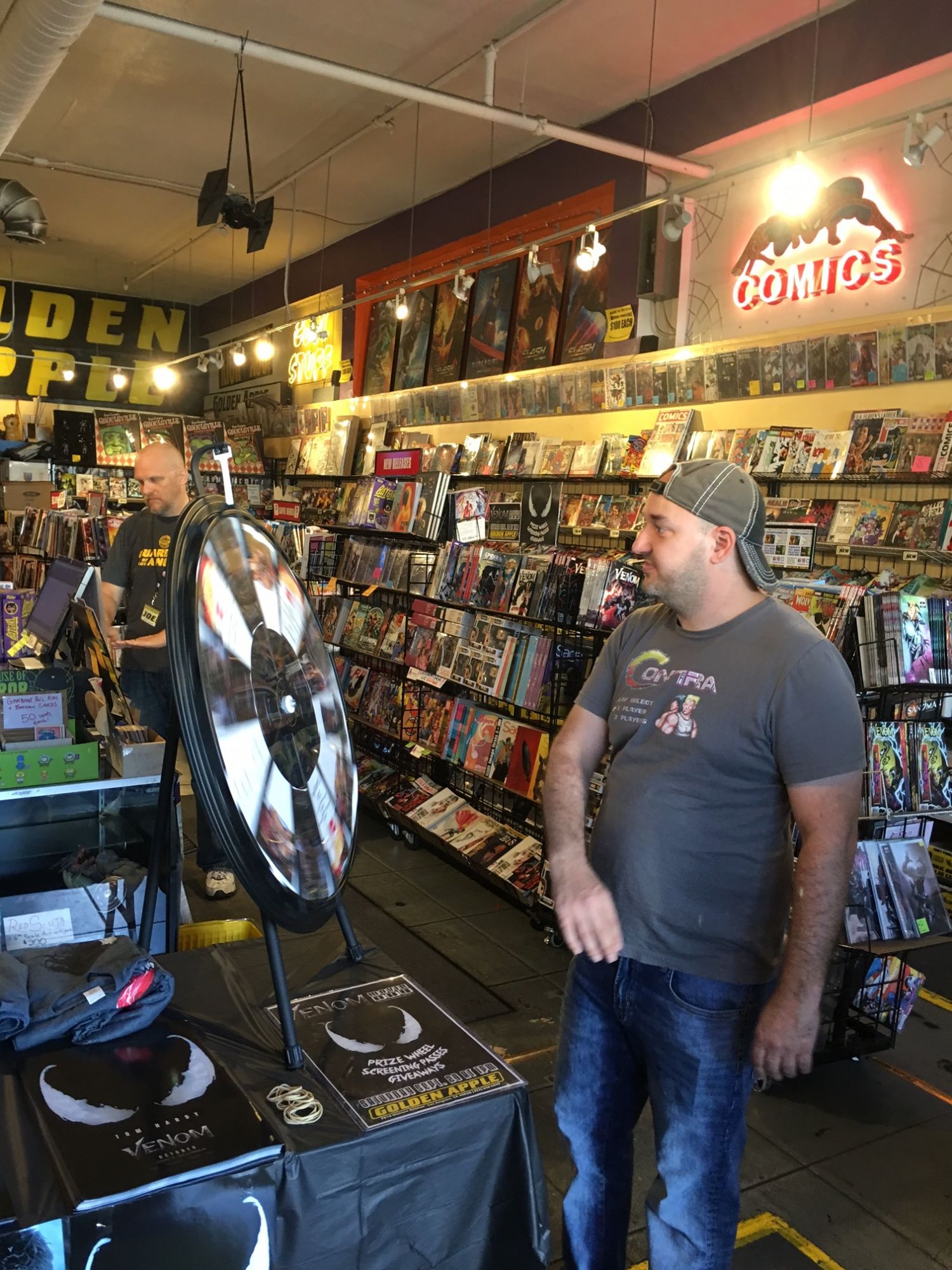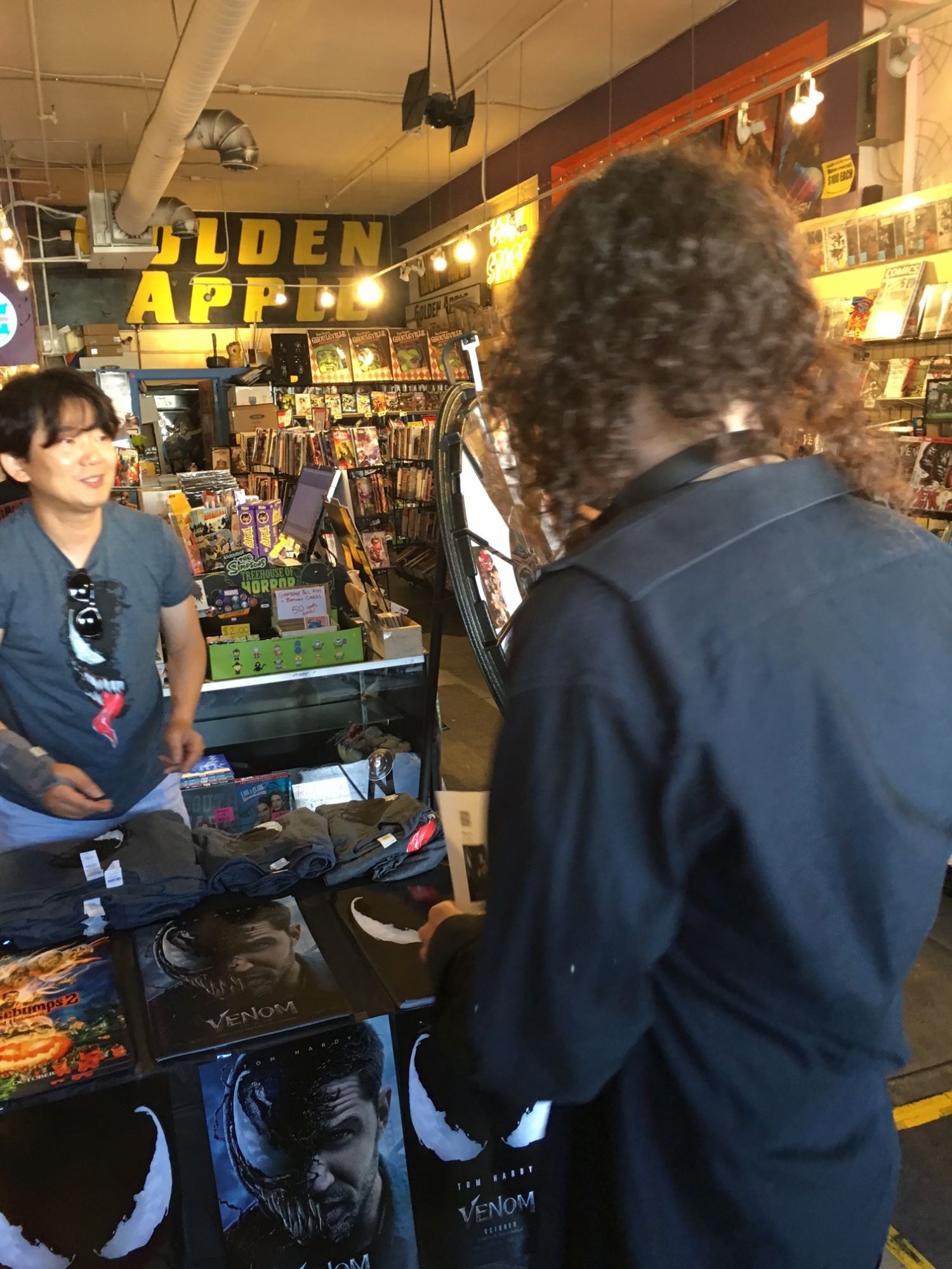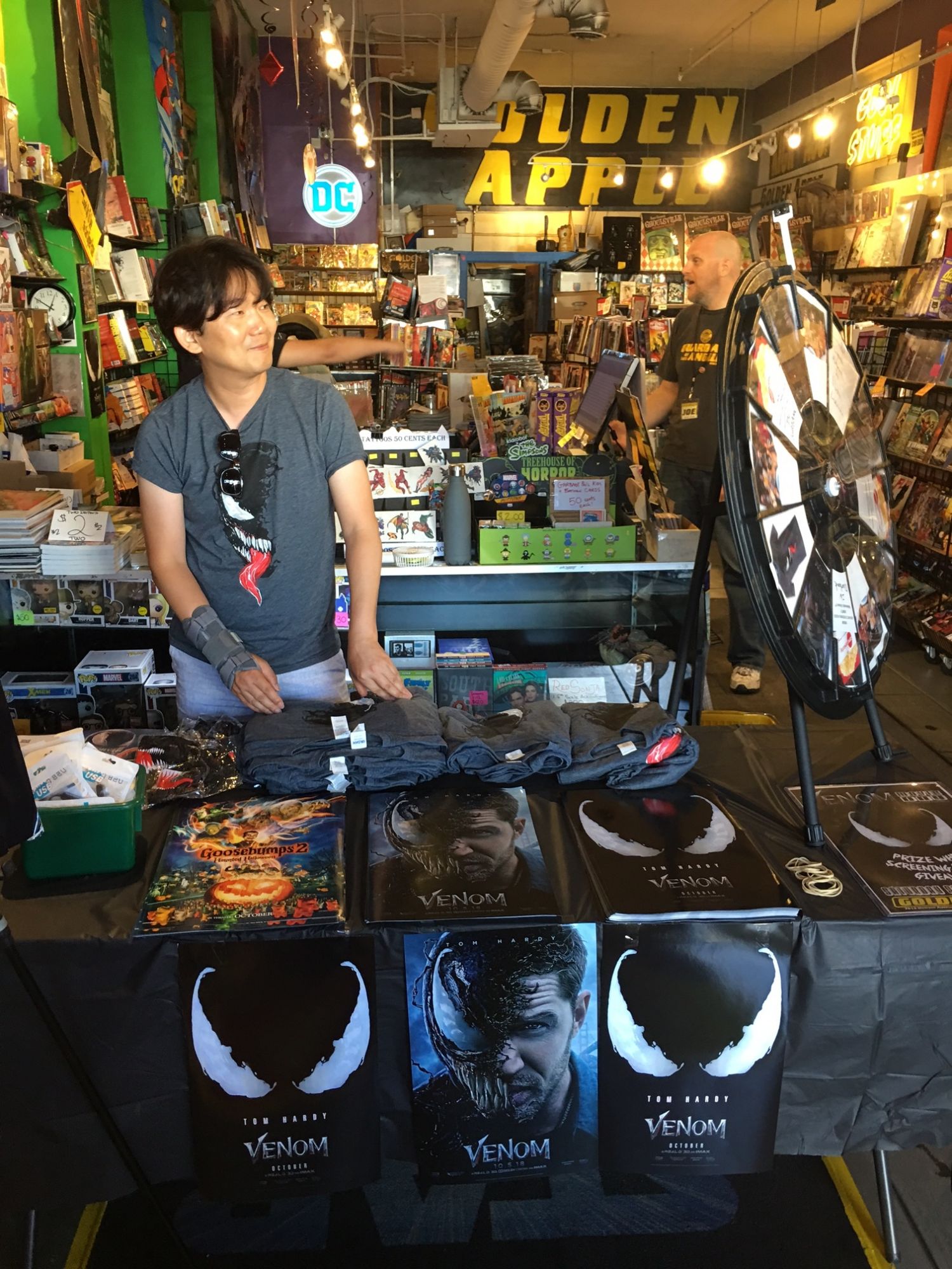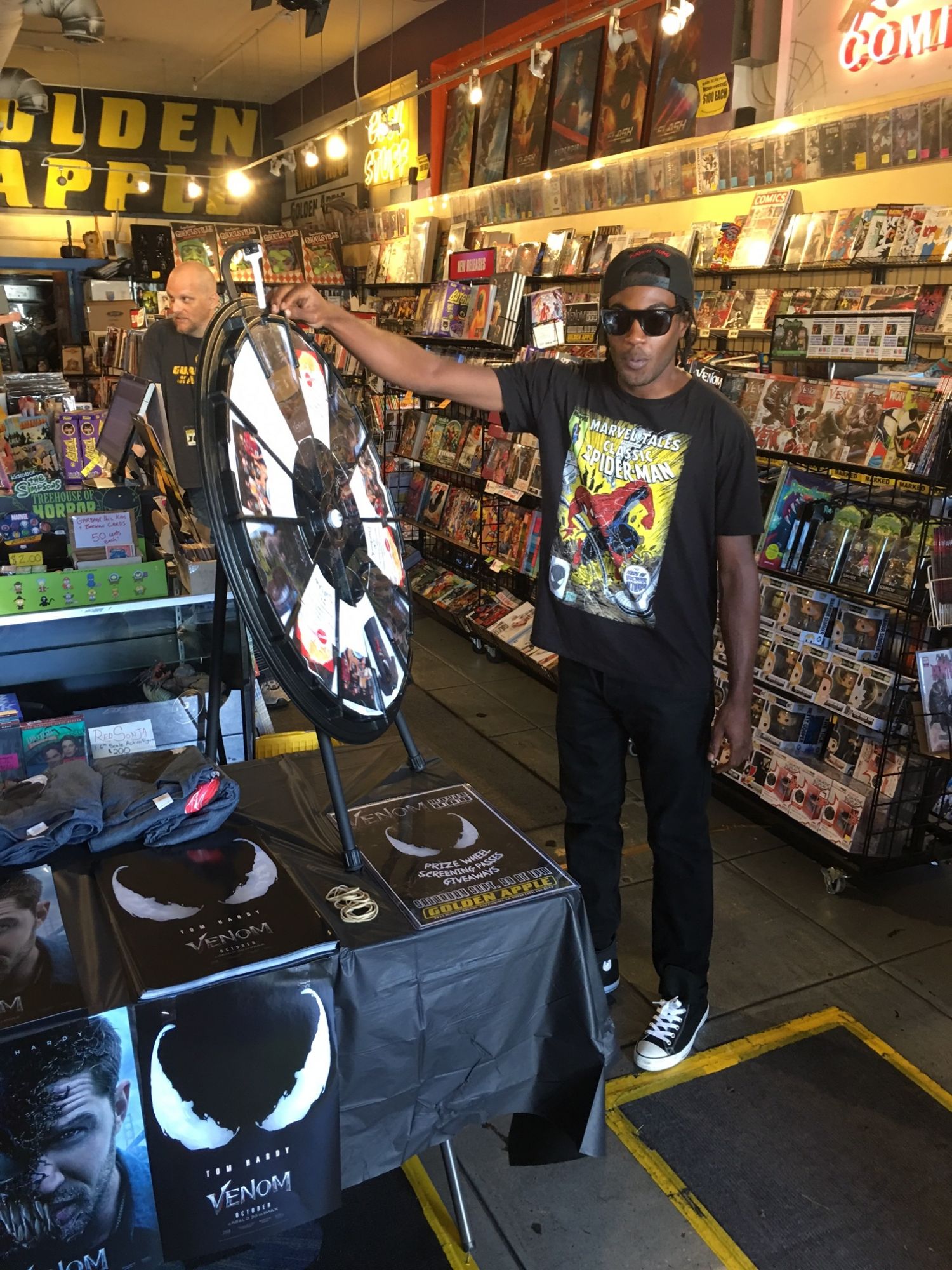 Bleeding Cool contributor Jason Strangis stopped by Golden Apple Comics in Los Angeles this weekend during a promotion for the upcoming Venom movie. Fans won posters, t-shirts, and free movie tickets… and here's some photos of them doing just that.