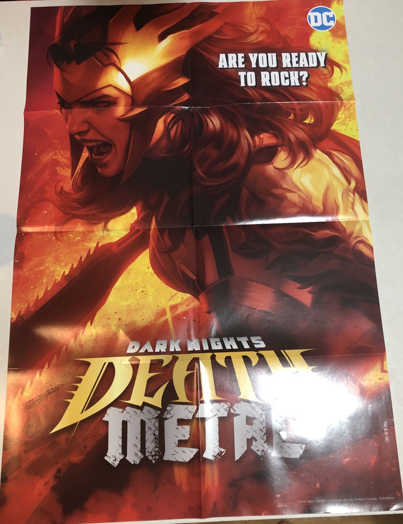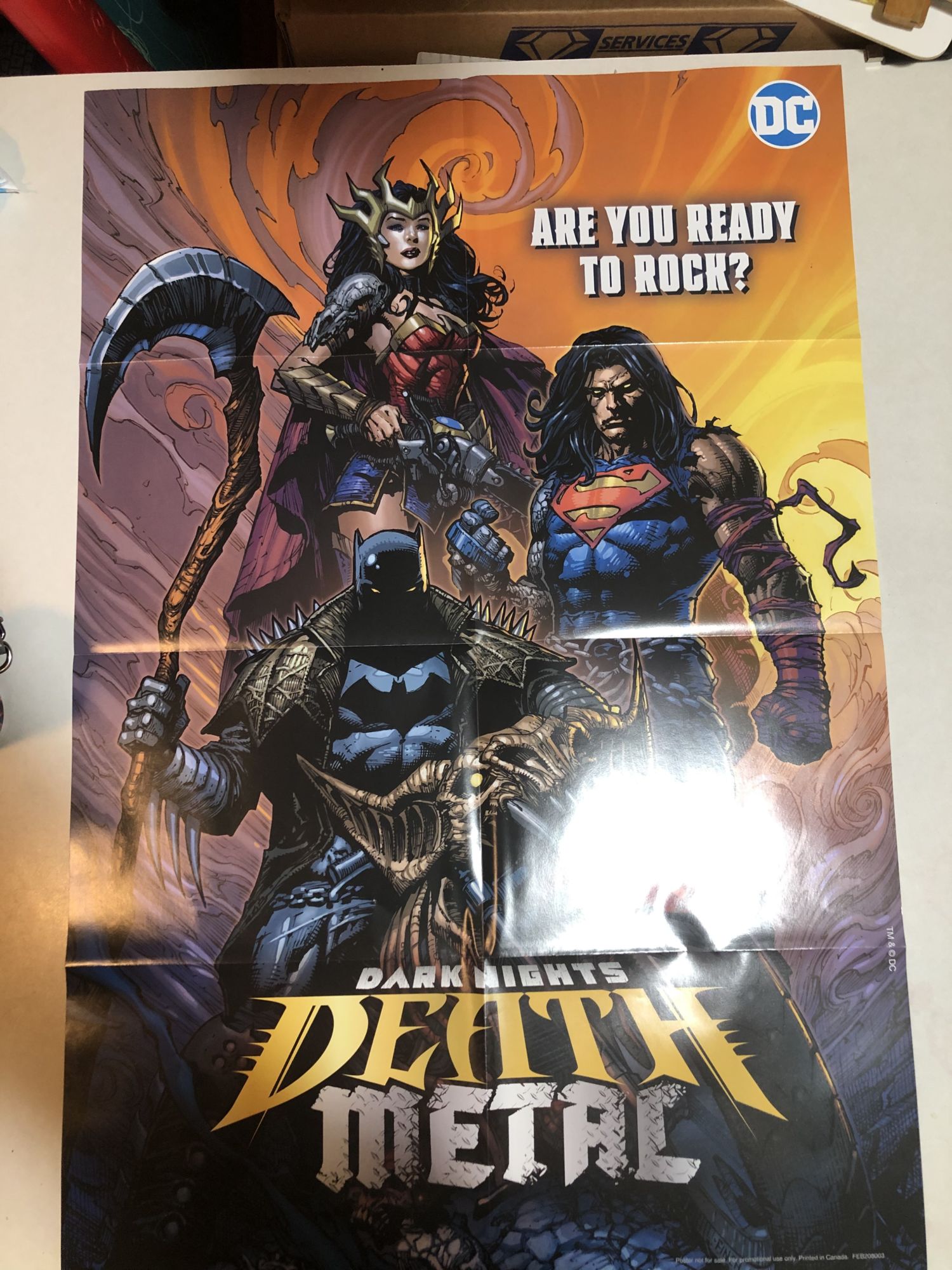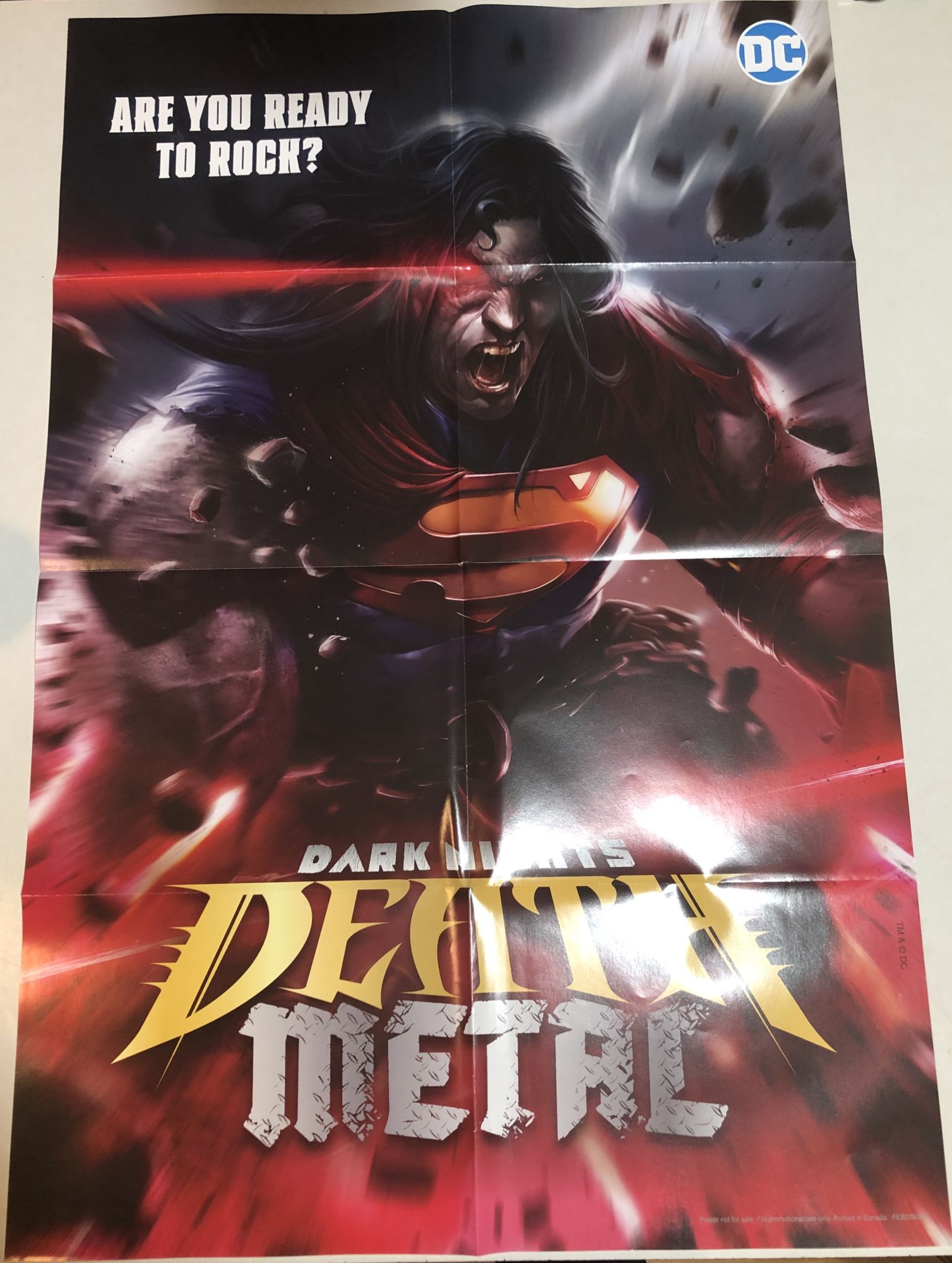 Finally, DC released this last week four posters all promoting the same one comic Dark Knights Death Metal #1. All four posters are 24" X 36" and featuring all four covers for the Event Crossover including the main cover art by Greg Capullo.