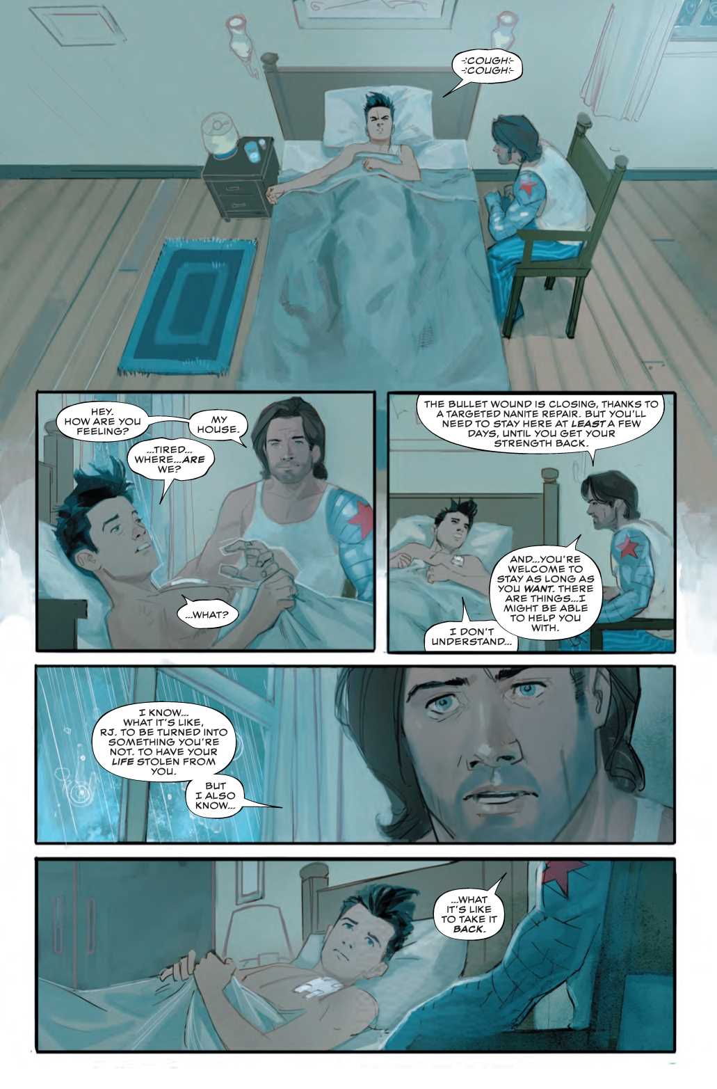 Having pulled RJ out of HYDRA, Bucky begins diving into the mystery of the young killer's past. Where does he come from? Who are his parents? How do you rehabilitate someone who's only ever known death? You give him something new to live for.