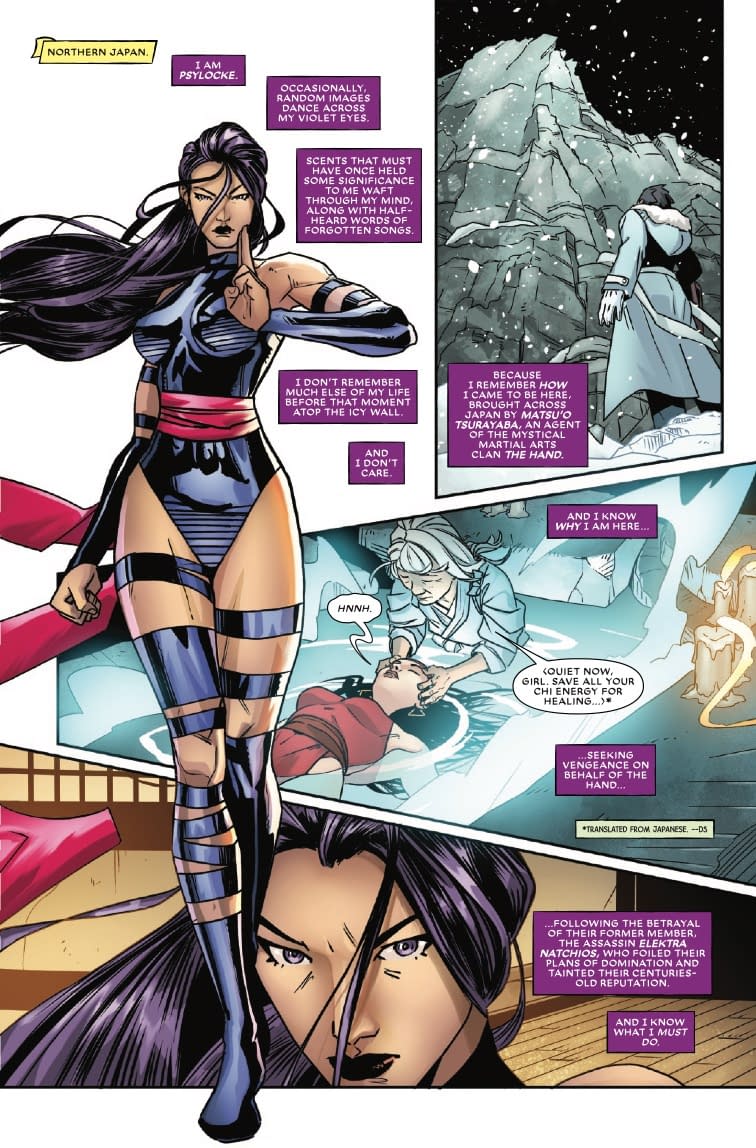 - Psyklocke: Ninja #2 sees Psylocke ordered by the Hand to assassinate Elektra—will she obey or resist?