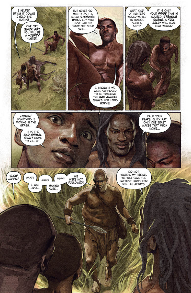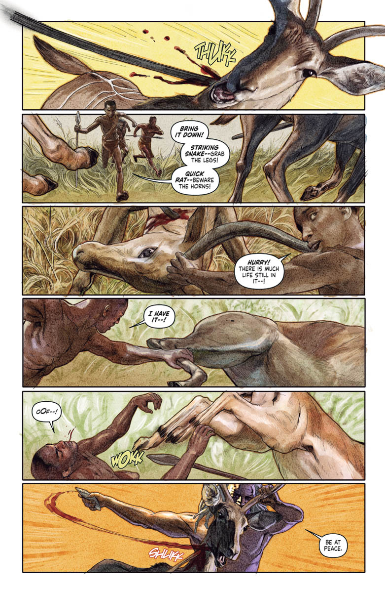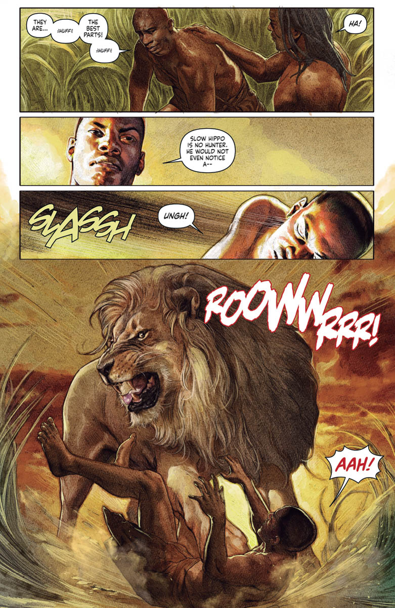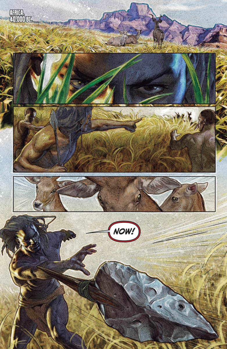 His soul cast adrift in the astral void, "DEAD AND GONE" has led Jack Boniface across the centuries in search of the origin of the Shadowman's curse – and now it's taking him all the way back to the beginning of mankind! Standing beside his ancestors in the kill-or-be-killed world of primordial Africa, Jack is about to awaken something ancient, hungry, inhuman…and, as darkness descends, the long-hidden face of the Shadowman loa will be known!