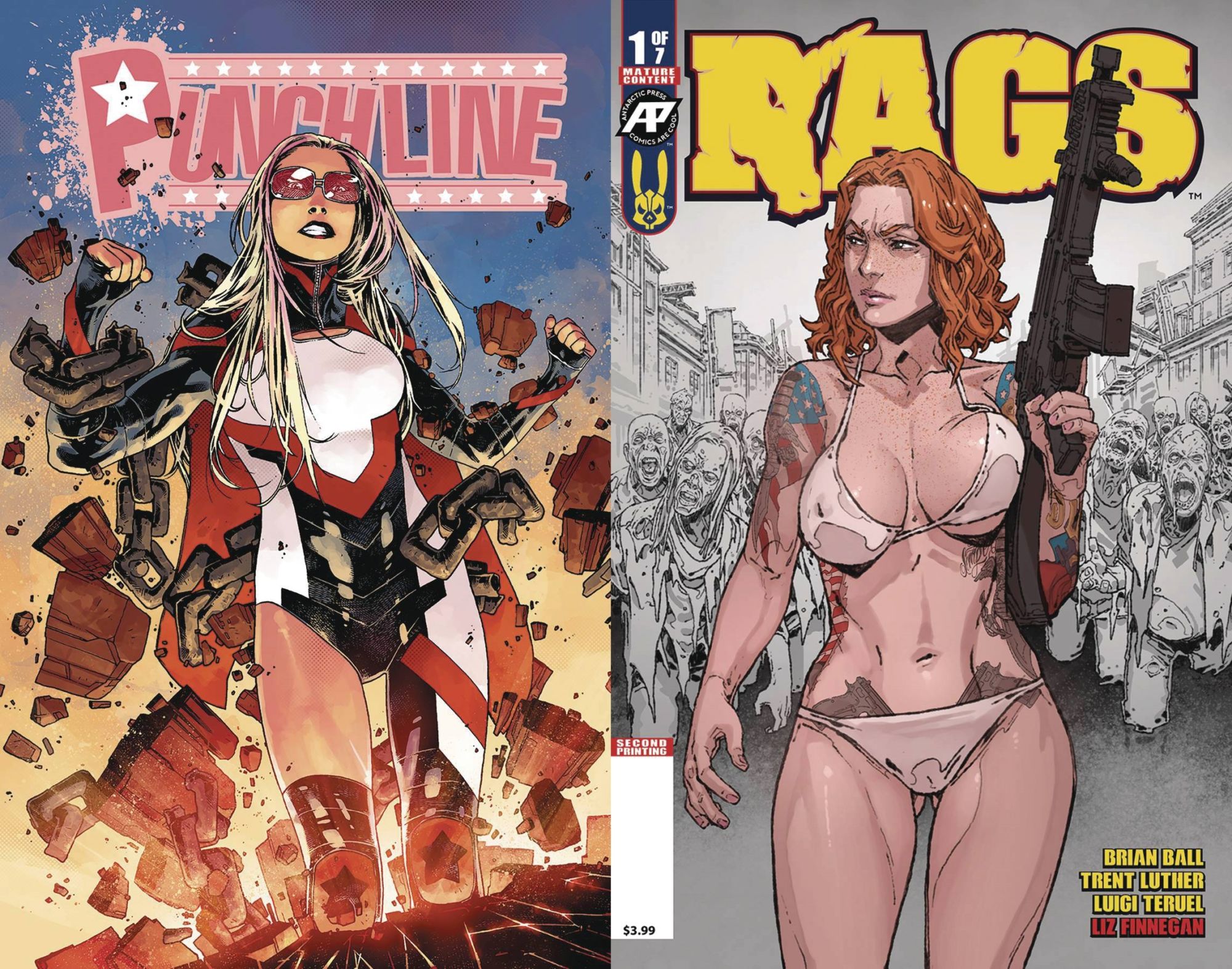 Two of Antarctic Press' biggest comic books from 2018 are going back to print. Rags #1 is getting a third printing, Punchline #1 is getting a second printing, both out for the 6th of February.