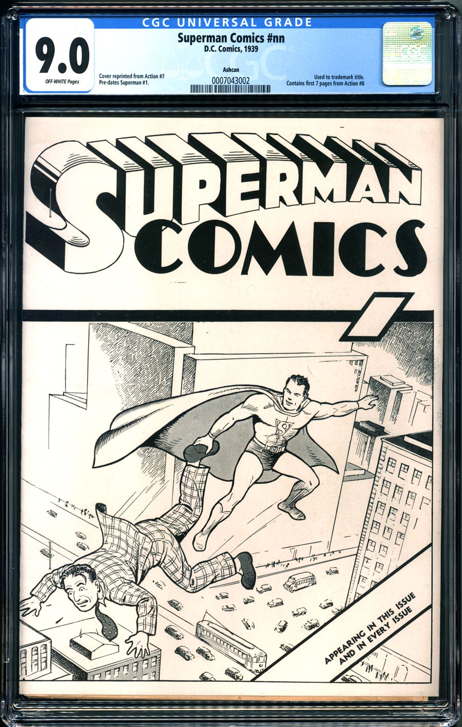 The cover art is from Action Comics 7 – the rare second cover appearance of Superman. The interior is the complete Superman story from Action Comics 8.