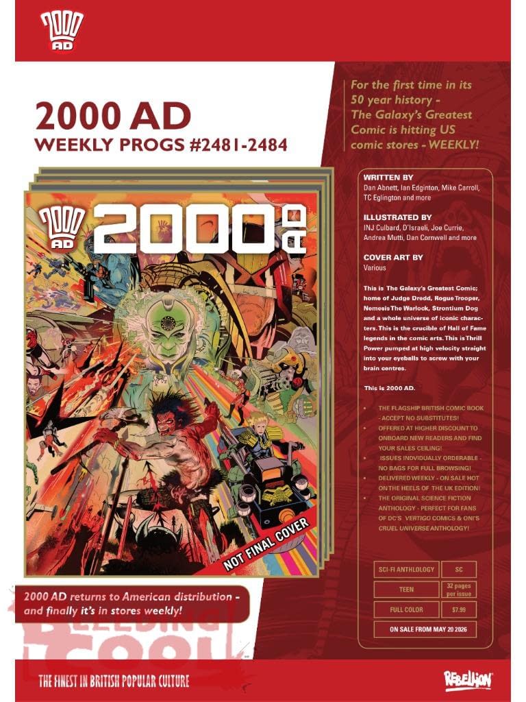 Rebellion/2000AD May 2026 full solicits and solicitations, as 2000AD goes weekly in the USA from May...