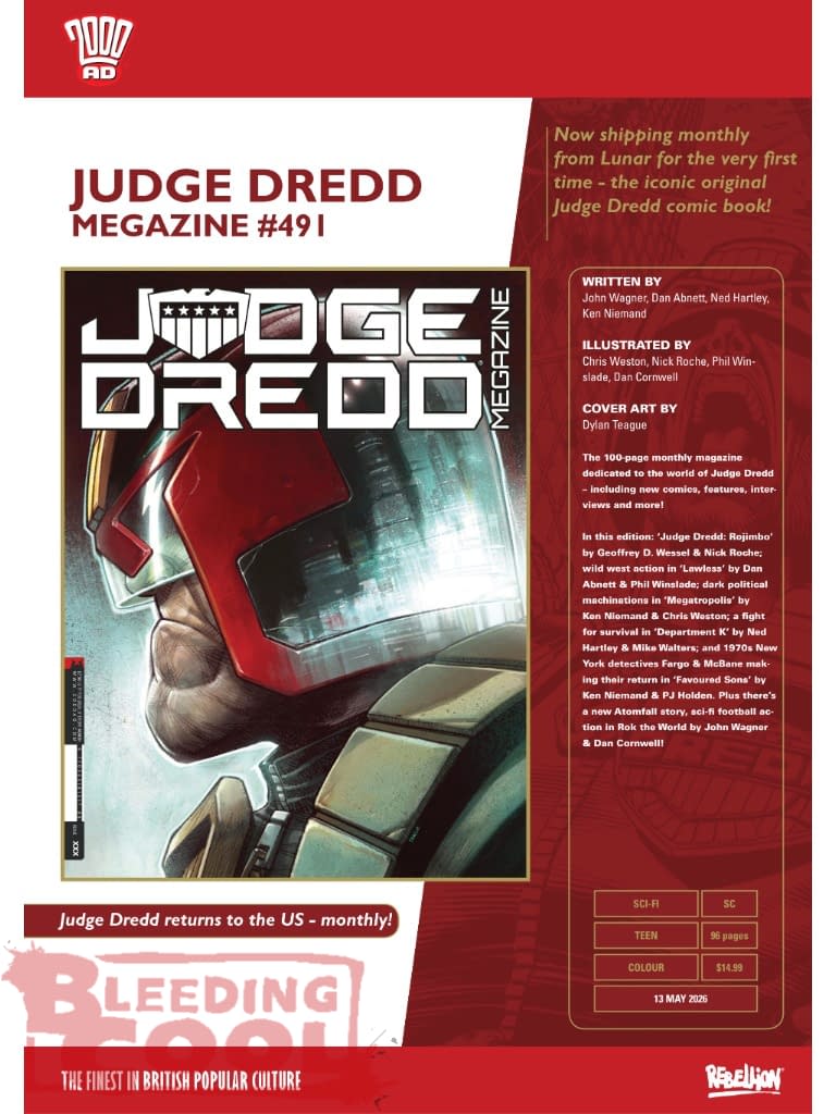 - Judge Dredd Megazine makes its US debut via Lunar Distribution in April 2026 with new and classic stories.