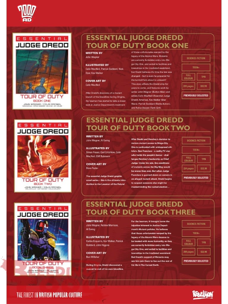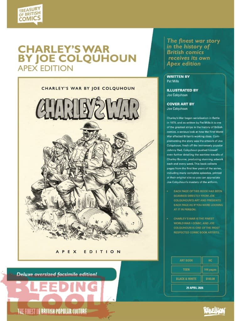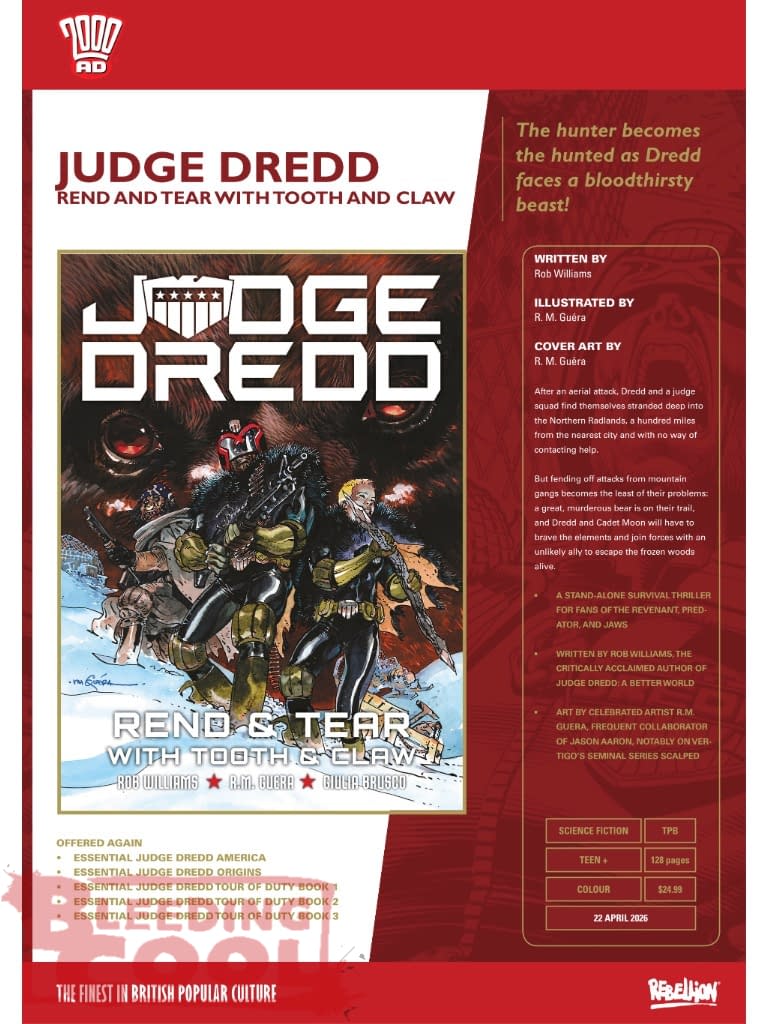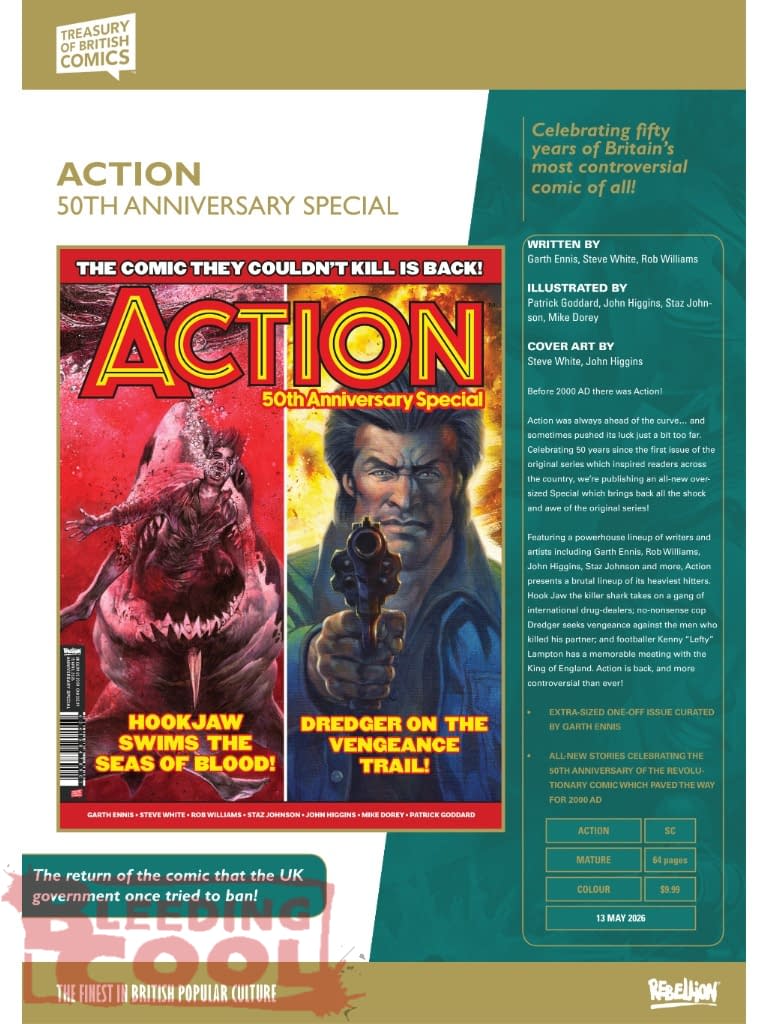 - Rebellion's April 2026 solicits include Judge Dredd, 2000 AD, Action 50th Special, and Charley’s War Apex Edition.