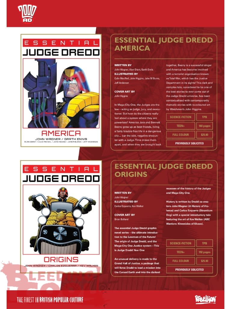 - New and essential Judge Dredd graphic novels highlight landmark stories like America and Origins this month.