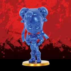 Metallic Blue Chun-Li is a variant of the regular Street Fighter Lil Knockouts vinyl figure, part of Cryptozoic's collectibles line featuring fan-favorite characters from the long-running video game franchise. This version of the figure is all-blue as a tribute to the signature blue outfit usually sported by the character, the first female fighter in the series. Each figure is stamped with "30th Anniversary" on the base and is individually numbered on the bottom. Designed by Pedro Astudillo and sculpted by Sam Greenwell, the 2.75-inch collectible comes packaged in Cryptozoic's signature, collectible tin with a foil sticker marking the 30th anniversary of the Street Fighter series.