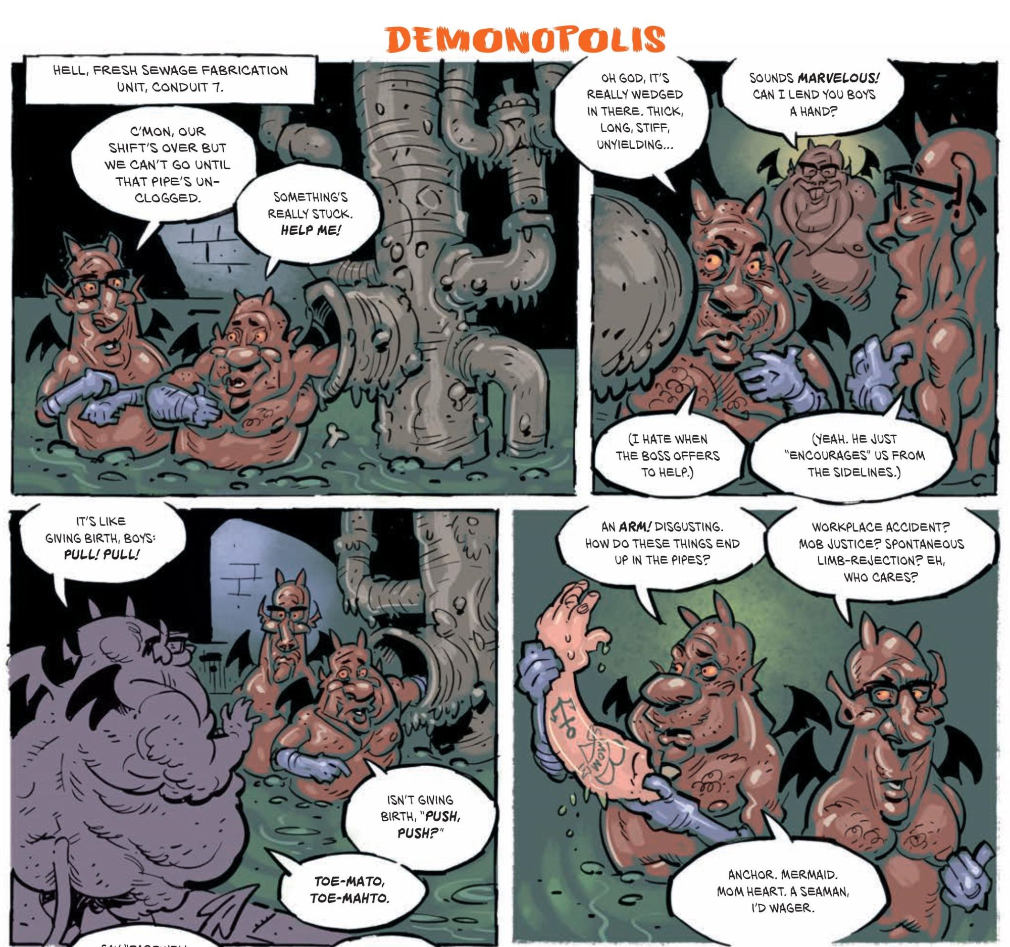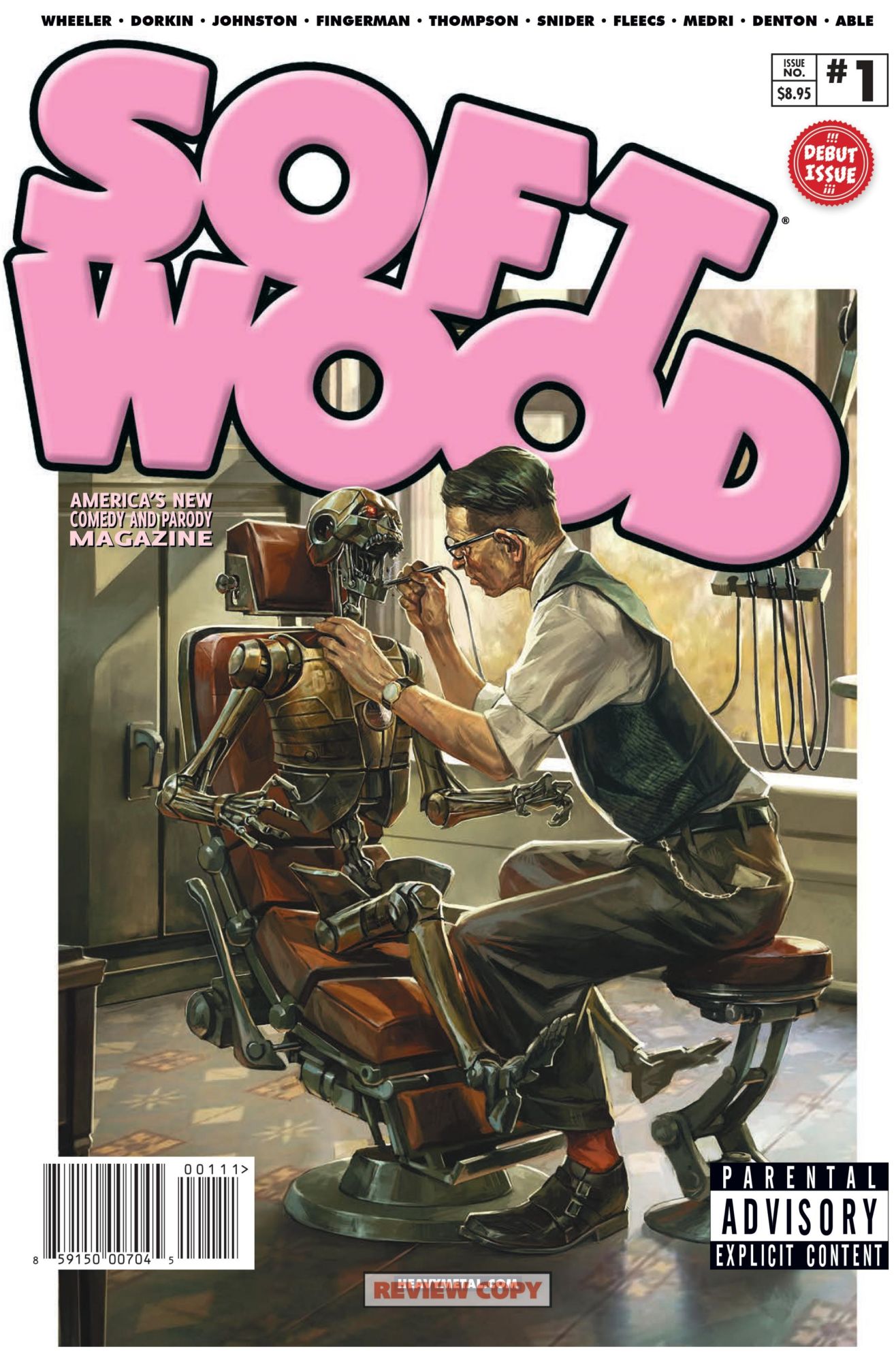 Last night in old London town, a small coterie of comic book creators gather in a pub, with visiting Heavy Metal CEO Jeff Krelitz to look at advance copies of the new comedy anthology spinoff from Heavy Metal, Soft Wood. Scheduled to be published every two months, the first issue features all manner of folk, some present last night, while others present were showing off all manner of portfolios that suggested they may be appearing in upcoming volumes of the magazine.
