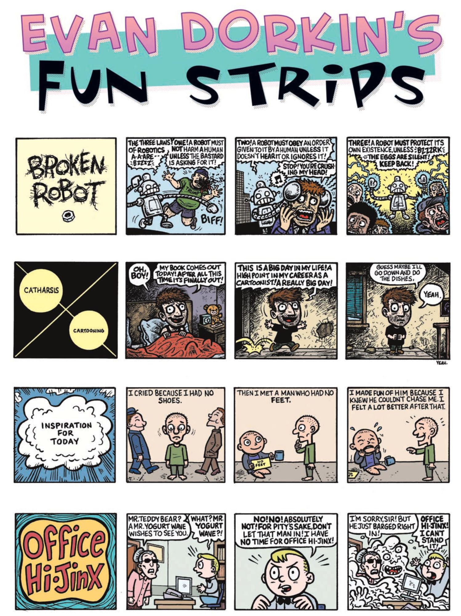 For myself, Soft Wood republished my Watchmen parody, Watchmensch, drawn by Simon Rohrmuller and now in loving colour courtesy of Watchmen colourist John Higgins who returned to his old analogue colouring skills to work on this parody of his old work, recreating those colour swatches and then exaggerating them slightly.