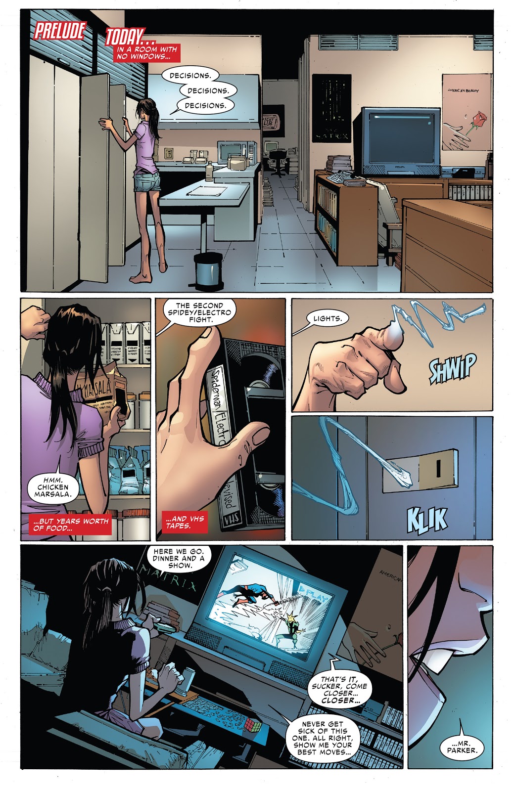 Cindy Moon is a young woman who, moments after the radioactive spider bit Peter Parker, was also bitten on the ankle. Unable to control her spider-web generating powers, she is approached by the mystical Ezekiel to offer his help and guide Cindy in controlling her newfound abilities. After six years training to use her powers, Cindy is locked up inside a facility by Ezekiel to protect her and the other "spiders" from Morlun and his family called the Inheritors. And only during the Original Sin crossover where secrets were exposed did Peter Parker realise what had happened. Any movie is likely to follow a less continuity-heavy path.