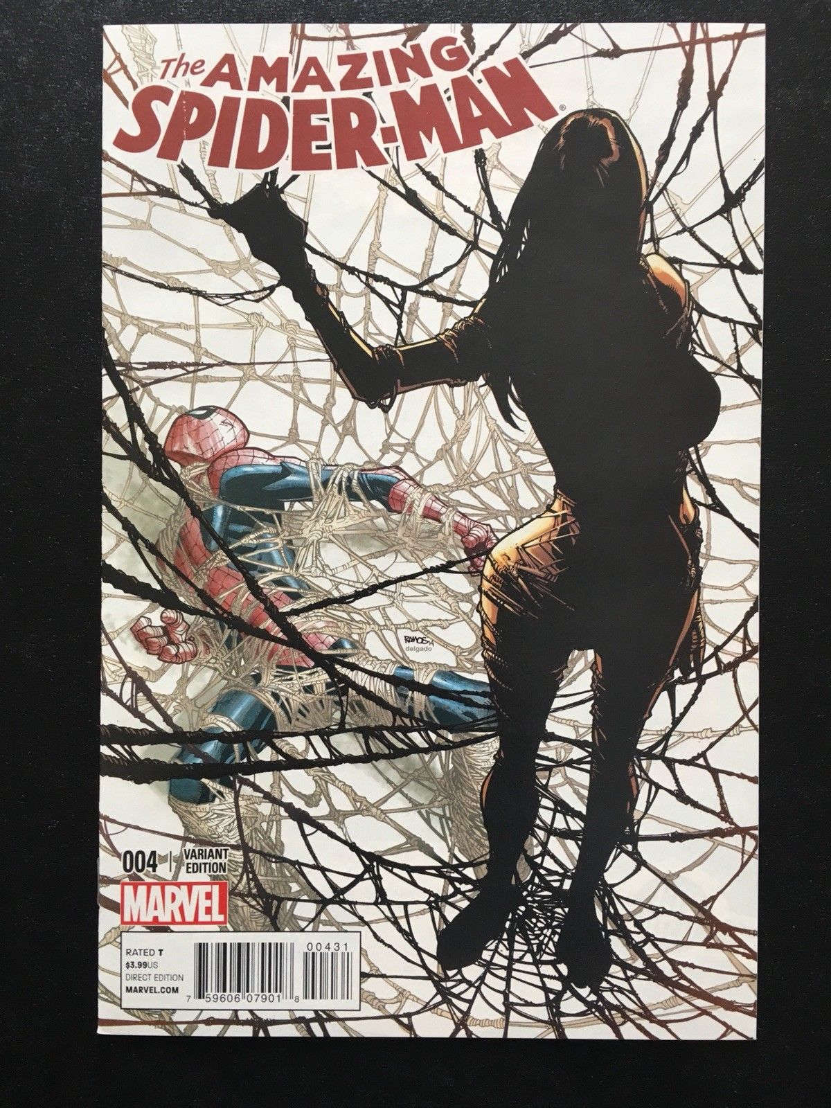 Currently the standard copy of Amazing Spider-Man Vol. 3 #4 has been selling on eBay for up to $62 but usually hovers around the $45 mark, while the 1:10 variant cover below featuring Silk by Humberto Ramos sells for up to $100 and the J. Scott Campbell variant for over $150.