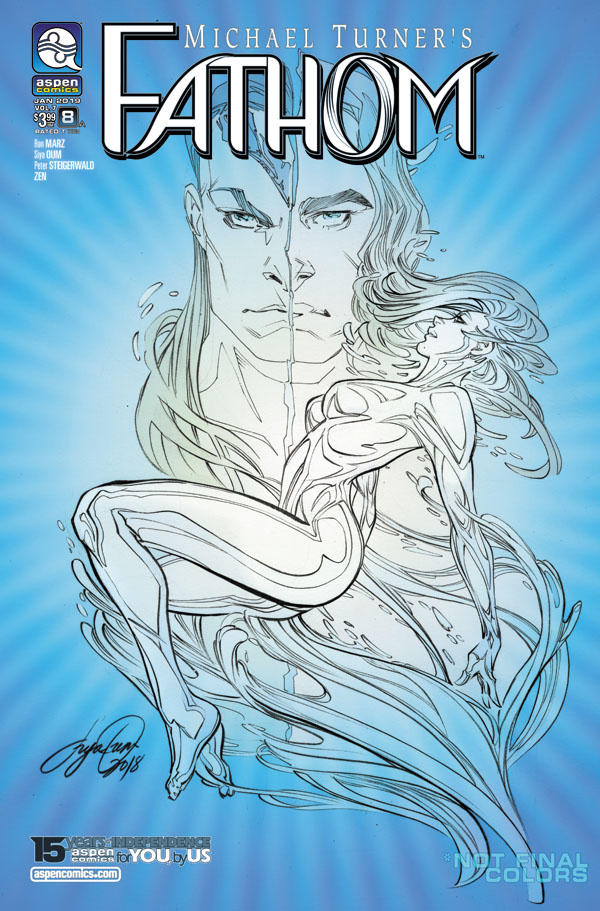 Michael Turner and Aspen Comics' flagship title commemorates its landmark twenty years since its debut in grand fashion! The superstar creative team of Ron Marz (Green Lantern, Witchblade) and Siya Oum (Lola XOXO) are on board to deliver Fathom, and the iconic heroine, Aspen Matthews, to a new generation of readers as well as loyal fans alike!