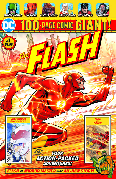 The Flash 100-Page Giant #1 features an all-new twelve-part story by Gail Simone and Clayton Henry, Glass Houses, in which Barry Allen is dedicated to keeping the streets of Central City safe as the Fastest Man Alive, but when his old foe Mirror Master shows up looking to cause trouble, it's up to the Flash to stop him. This book also includes Flash stories by Francis Manapul and Brian Buccellato, Adam Strange by Andy Diggle and Pasqual Ferry and Shazam, by Geoff Johns and Gary Frank.