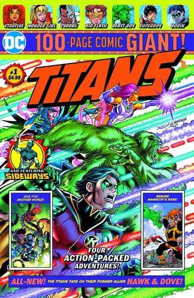Titans 100-Page Giant #1, has Dan Jurgens continuing his original story with Scot Eaton and Wayne Faucher. In addition, the book will continue with Geoff Johns and Tom Grummett's Teen Titans from 2004, Peter Tomasi's Super Sons and Kenneth Rocafort, Dan DiDio, and Max Raynor's Sideways.