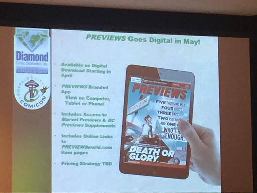 And Previews will go digital in May, and customers can get a digital code with each physical copy, to help with portable access. Previews will exist as its own standalone app.