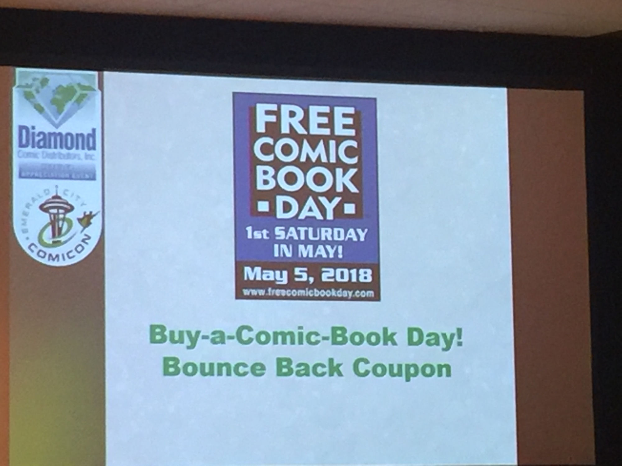 Diamond is keen to promote ideas such as Bounce Back Coupons or Buy a Comic Book Day coupons to improve return after Free Comic Book Day is over.