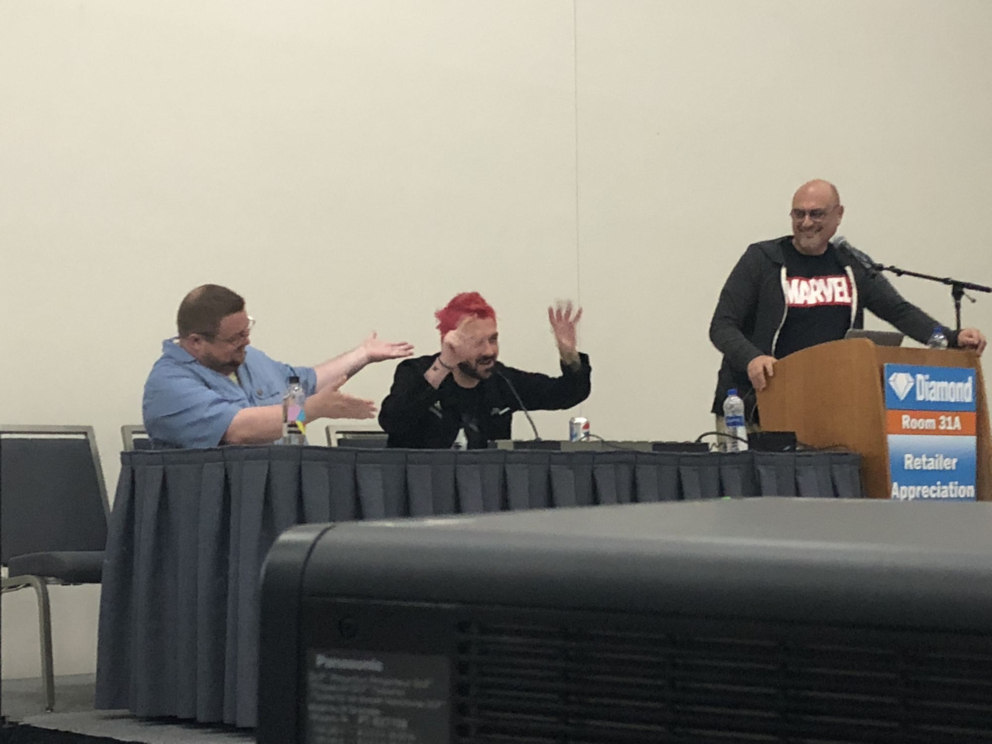 At the Diamond Retailer Appreciation Lunch at San Diego Comic-Con, Marvel Comics saw Editor-in-Chief C.B. Cebulski and SVP David Gabriel step in with the newly dyed and ex-Bleeding Cool reporter Donny Cates.