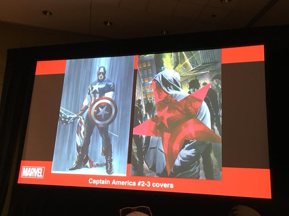 Captain America #1 by Ta-Nehisi Coates and Leinil Francis Yu, Coates has a very unique take on Cap, and there were some Alex Ross covers that got some applause from the retailers.