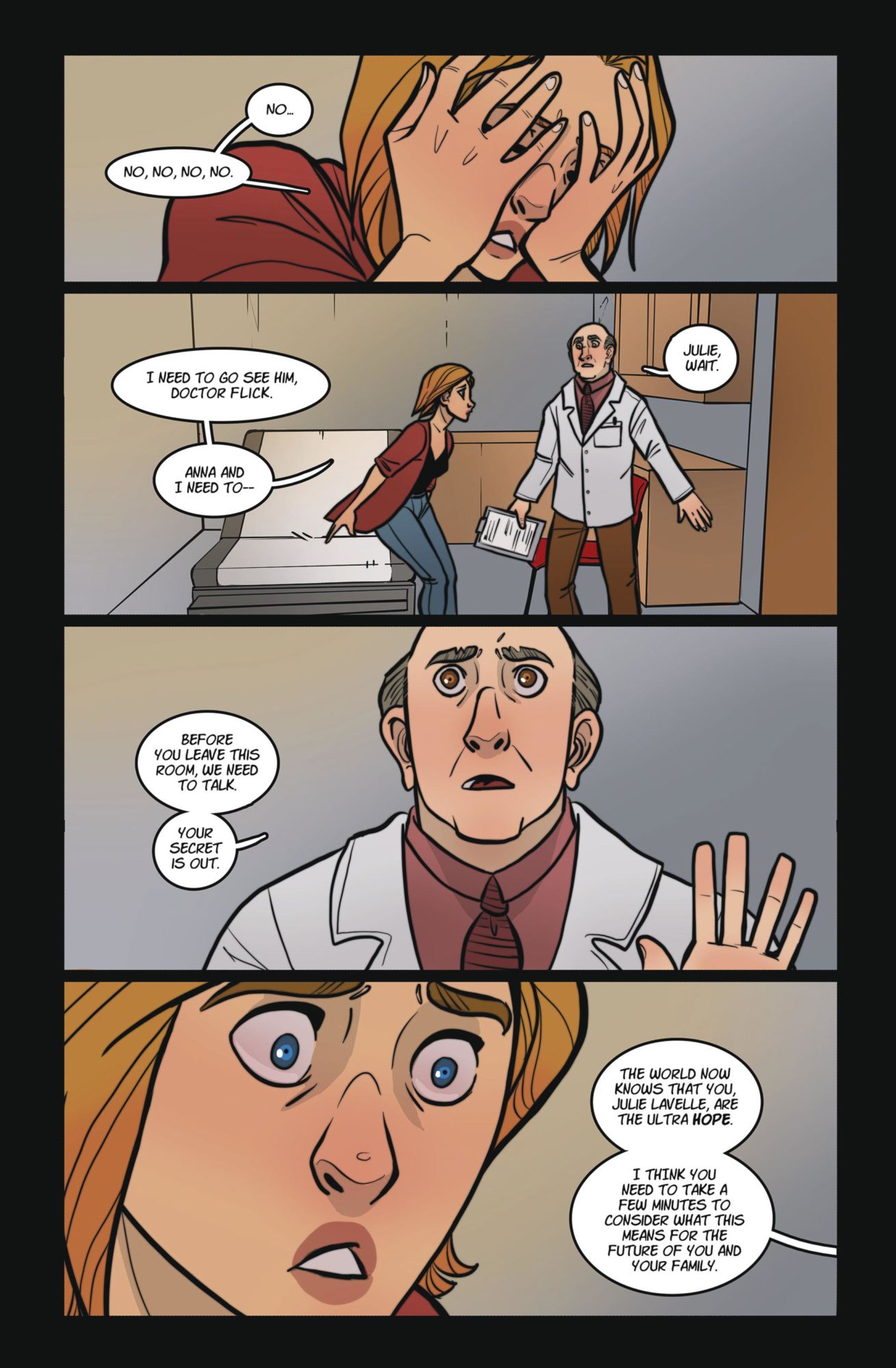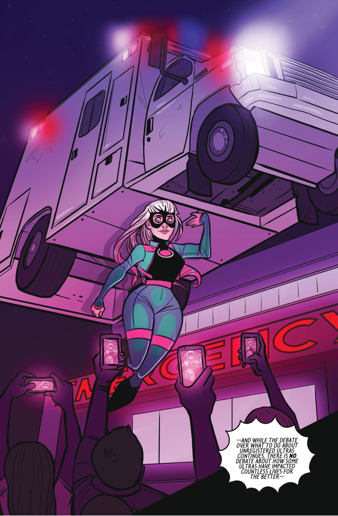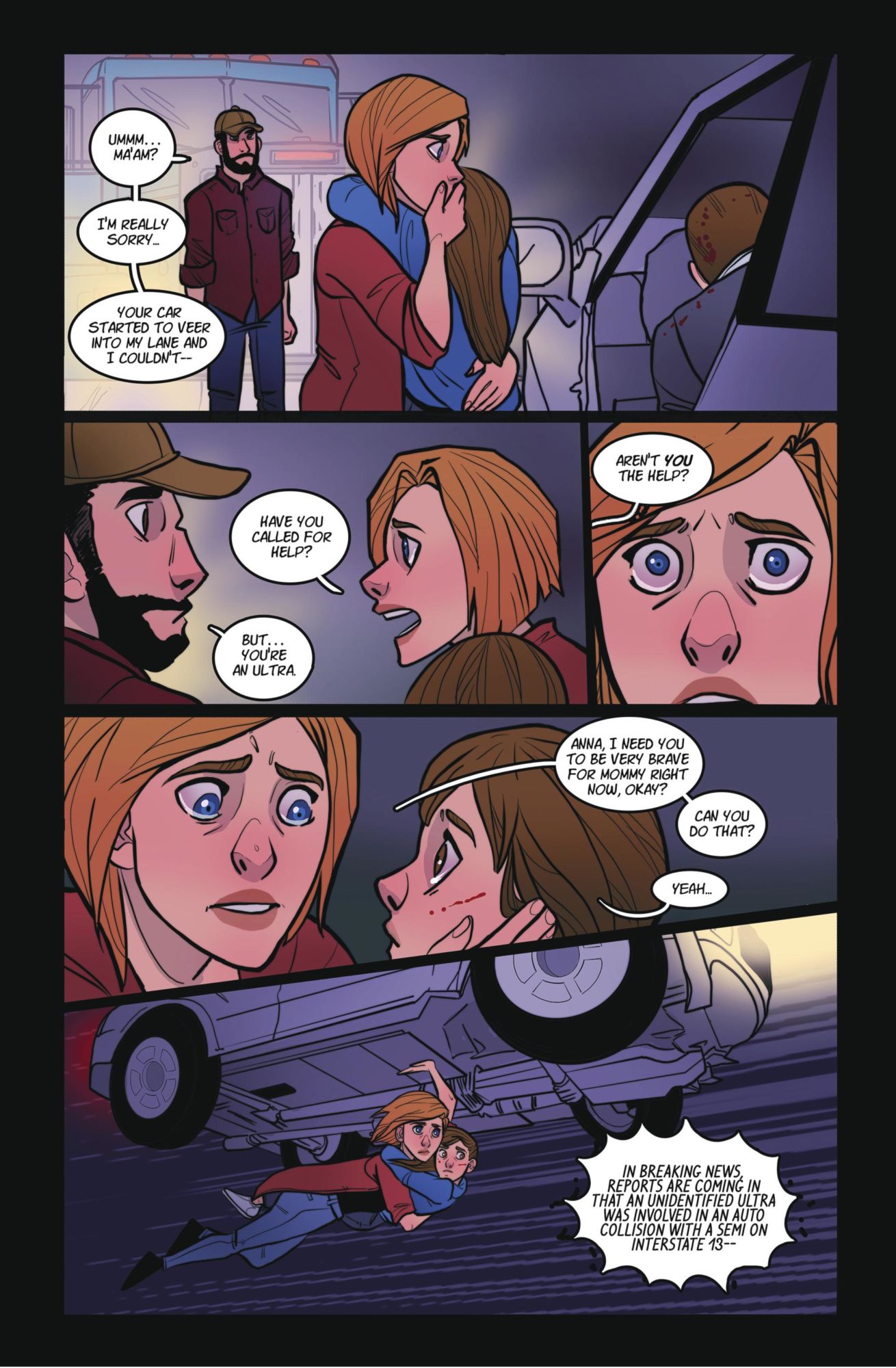 Unbeknownst to her husband and daughter, Julie Lavelle secretly moonlights as a beloved costumed "ultra" known to the public as Hope. However, when a family outing takes an unexpected turn, she quickly learns how everything can change in an instant. Acclaimed creators Dirk Manning (Nightmare World) and K. Lynn Smith (Plume) present the full first issue of a new superhero-based series unlike any other!HOPE #2