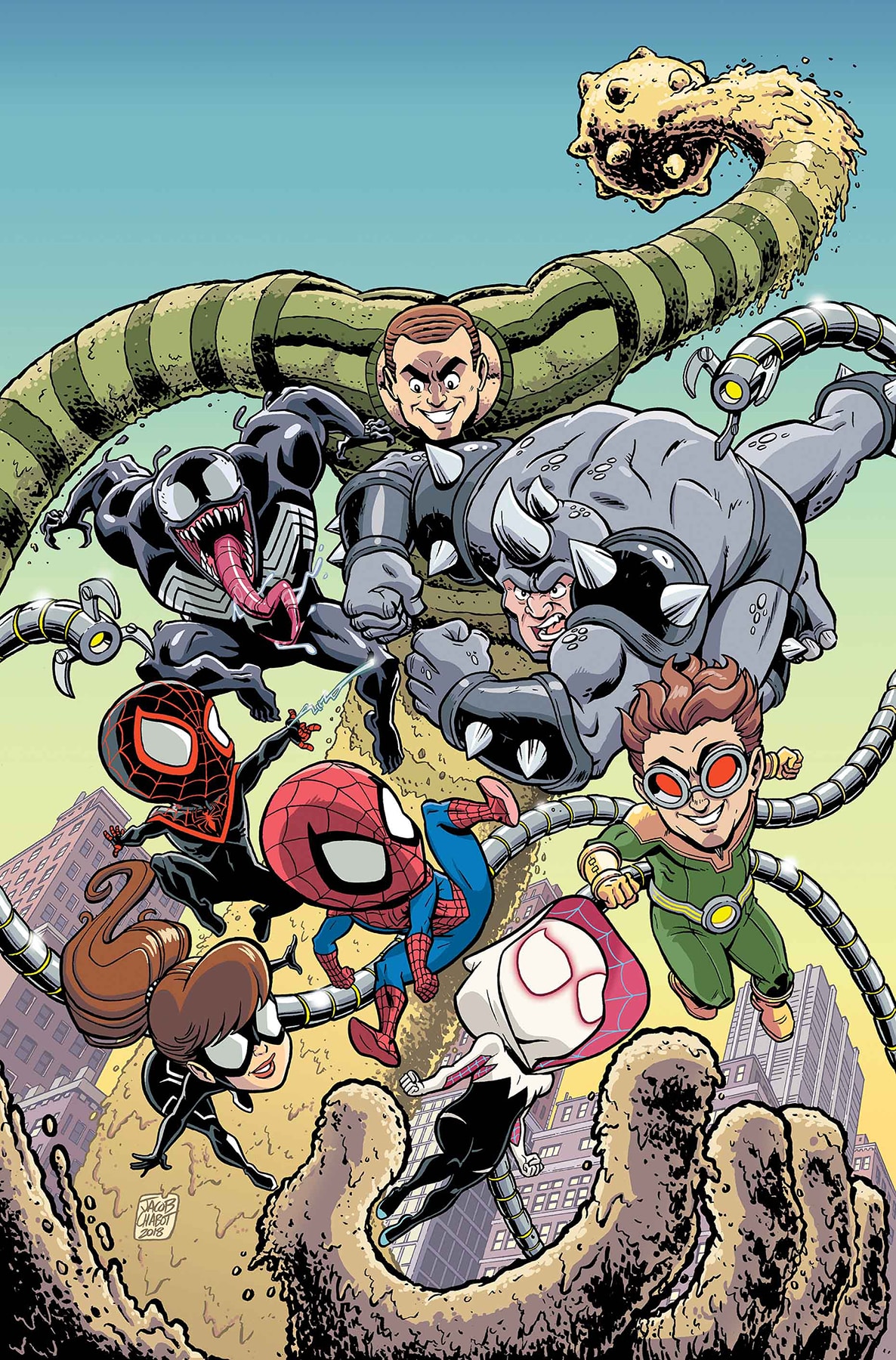 • So, what happens when your friendly neighborhood Spider-Man meets up with his favorite Spider-Pals, Miles, Gwen and Anya?