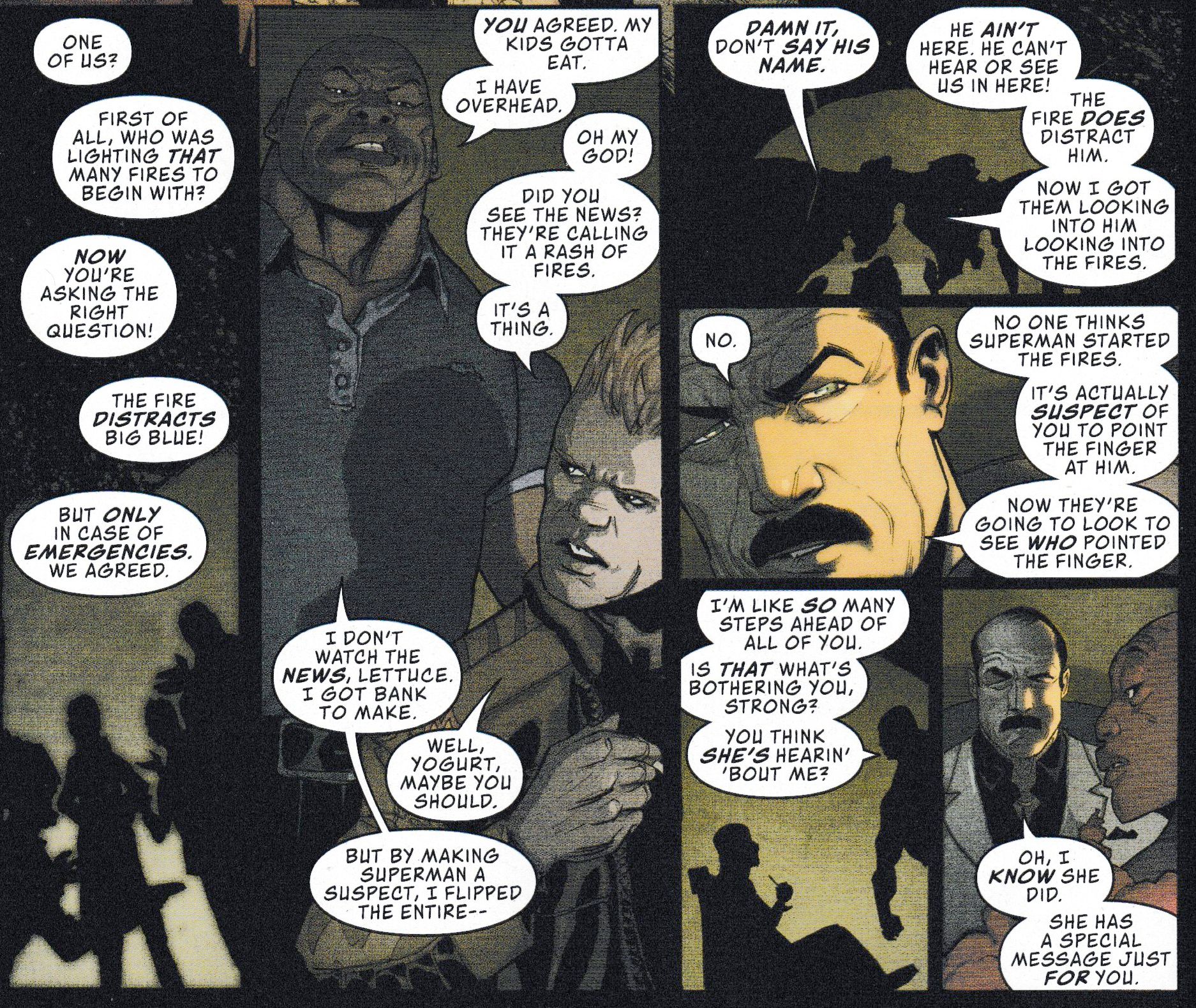 Over the weekend, we heard how Brian Michael Bendis was introducing an equivalent to Gotham's Court of Owls to Metropolis. And showing how an organised crime network could work under the very noses of Superman, even as Man of Steel saw Superman listening out for trigger words or sounds across the whole city. Like an Amazon Echo.