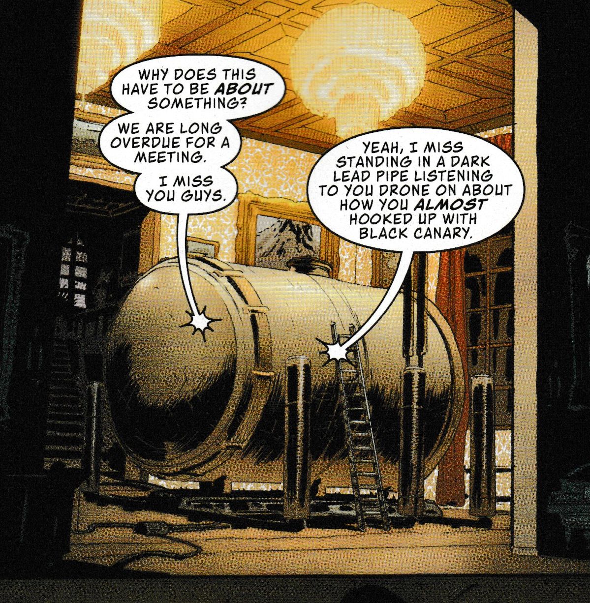 But while the Court of Owls are elegant, stylish — the 1% of the 1% — the Metropolis equivalent are not. Rather than meeting in a grand opera hall, they have to use… a lead-lined water storage unit in a grand opera hall. Kinda spoils the vibe.