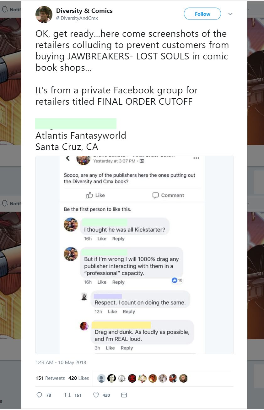 But he made the point that, aside from the creator posting gratuitous insults against friends and creators he supported and sold in store, there are a number of other reasons the store wouldn't have stocked the book.