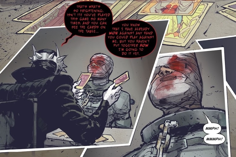 Here, the character may be intended to be black. Could that mean it's this Joker's version of Duke Thomas? One who stayed a Robin in that world – and you know what Jokers do to Robins?