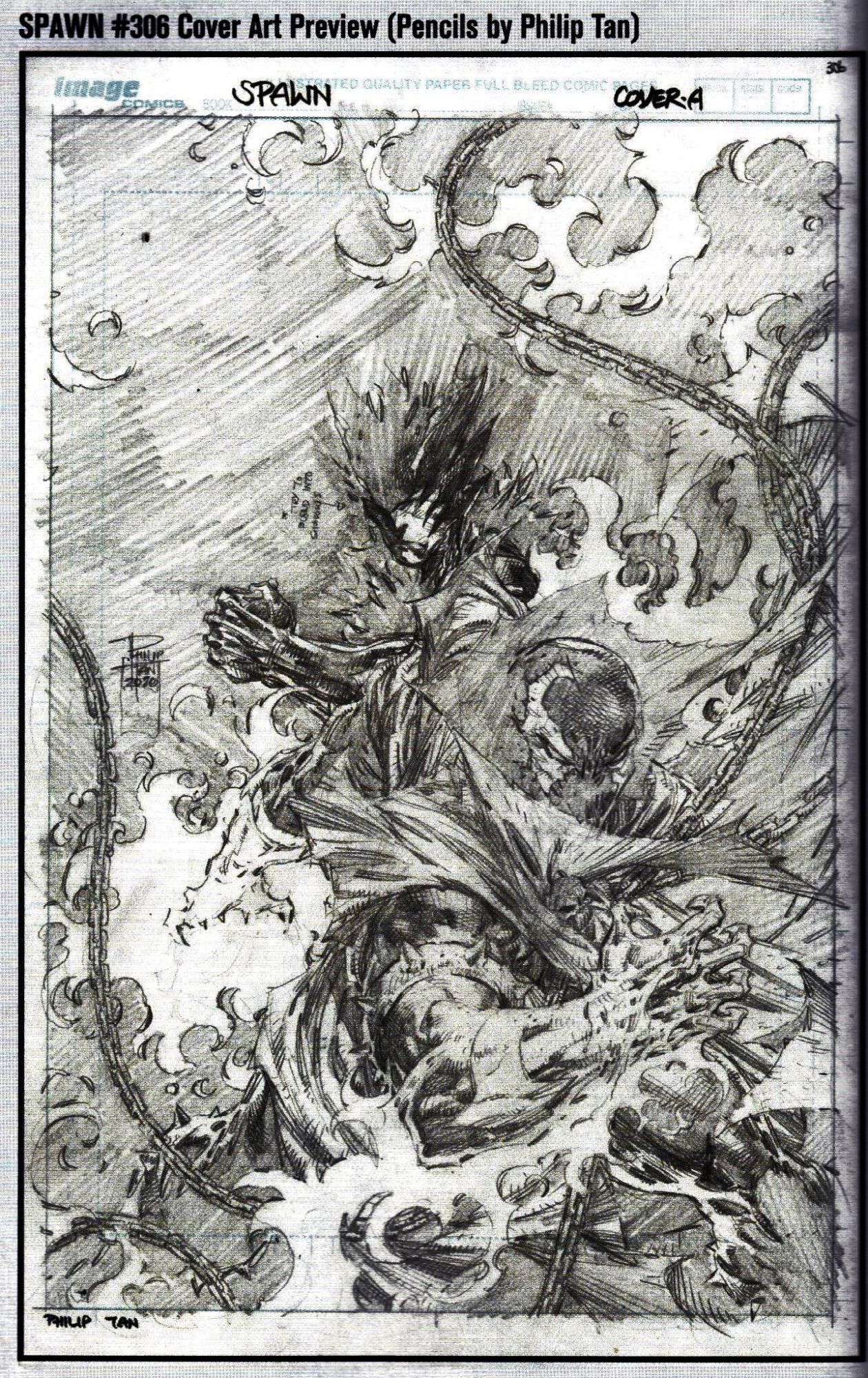 In the back of today's Spawn #305 – which sees Todd McFarlane and Jason Shawn Alexander working on the same Spawn pages in some places – Todd says goodbye to Jason, as he is off to pastures Killadelphia. And welcoming Philip Tan to the series, with some preview pencil cover art by Tan. Which I have chosen to overexpose so you can get a better look at whoever this new character is. Here's the images, alongside the solicits for each issue.