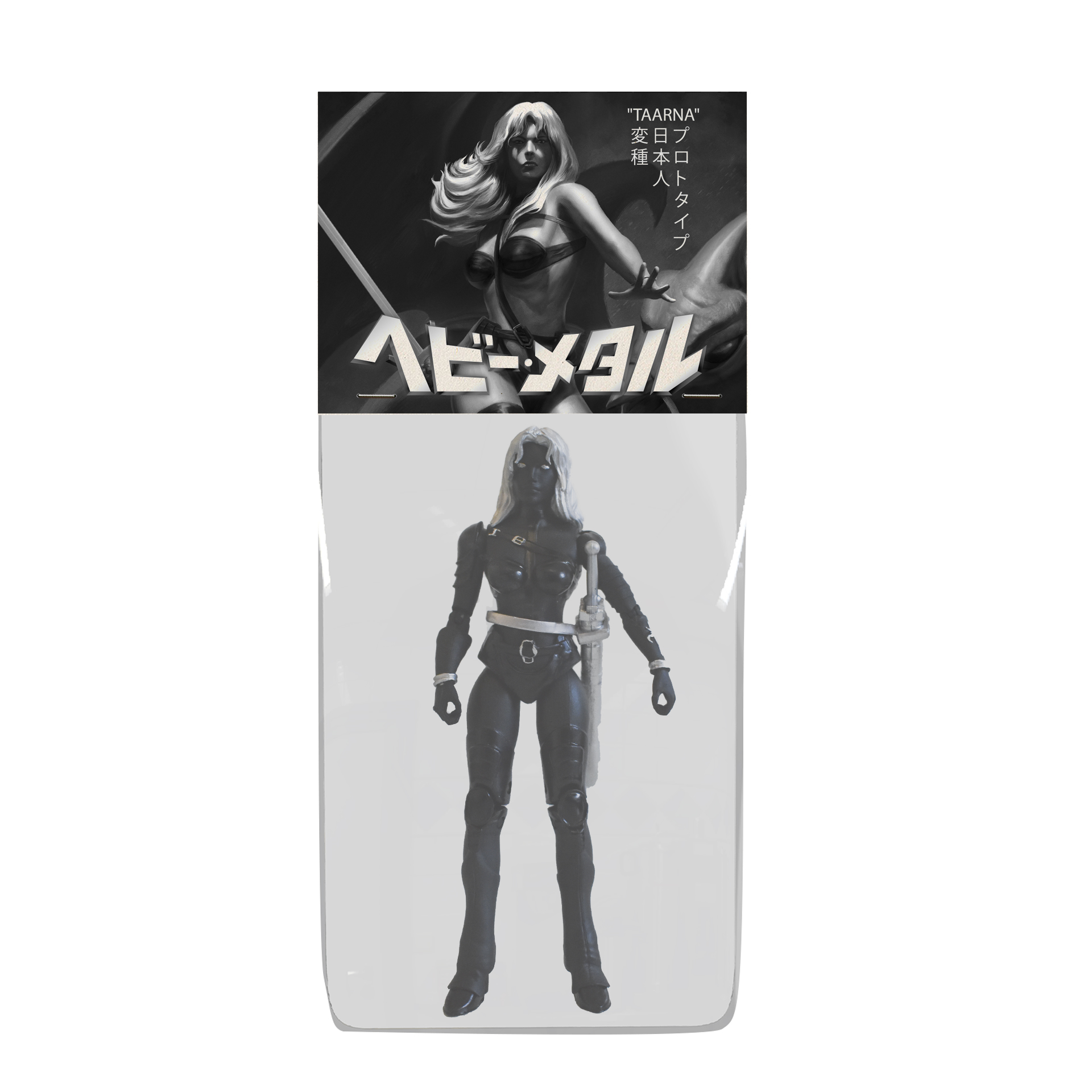 NYCC exclusive figures – $40 each. 'Black Metal' edition of Taarna / Nelson. 5inch figures w/10pt articulation & accessories. Packaged in bag with metallic header card.