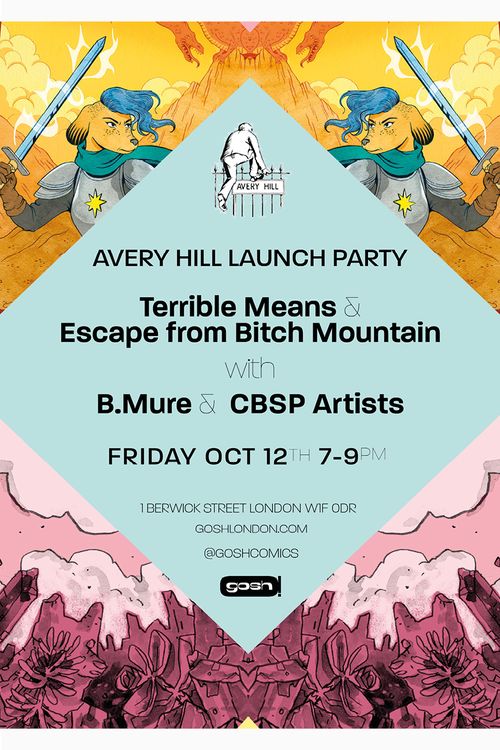 Avery Hill Launch Party for Terrible Means and Escape from Bitch Mountain, Gosh Comics, 7-9pm