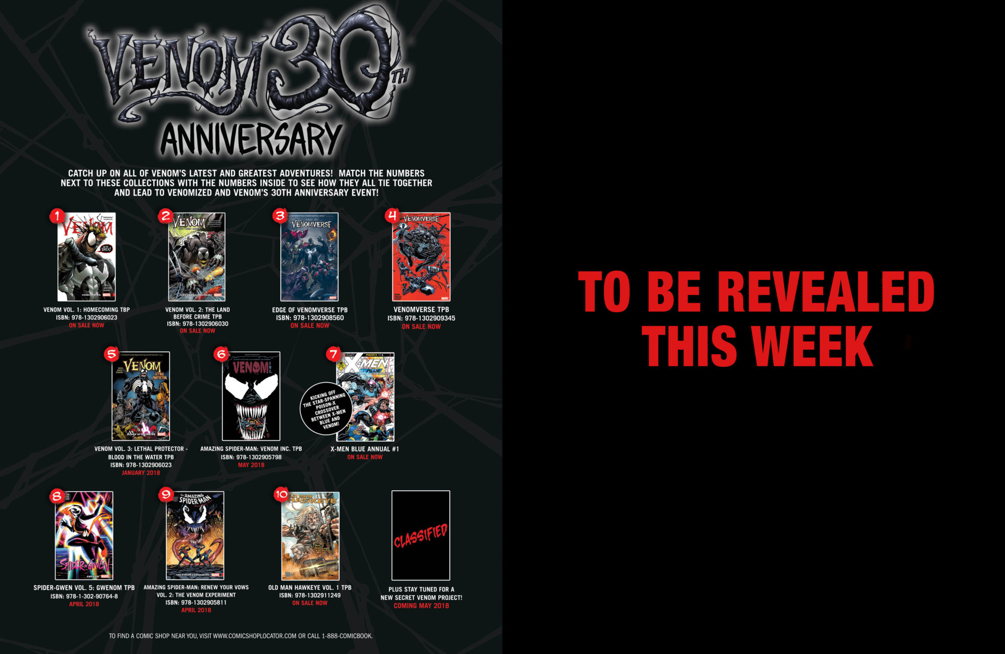 Mentioned in the solicits for Venom #165 for April 2018, is this promise: "IN THIS ISSUE: Startling revelations that set the stage for the Venom epic of the fall!"