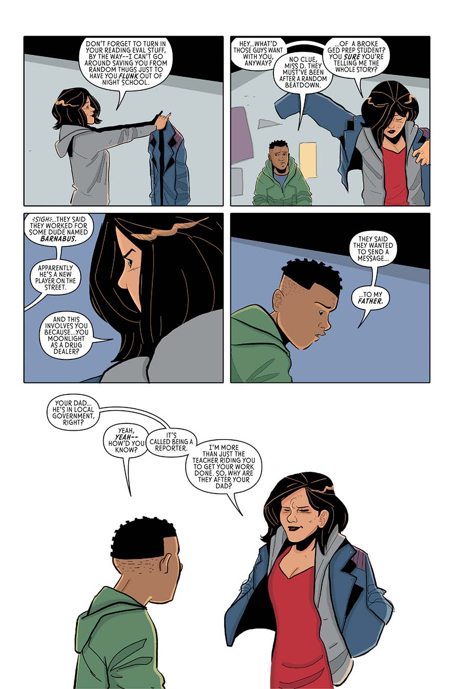 Kambadais mixes a Bruce Timm aesthetic with a modern flair for a new take on the classic superhero vigilante concept. The Black Ghost tells the story of flawed Crreighton reporter Lara Dominguez – who's bending all the rules to get that one, big scoop: the truth surrounding the city's lone vigilante, The Black Ghost. But if you read the first issue, you'll find a last page that leaves preconceptions scrambled.