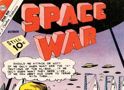 The era directly following the initial "Space for Peace" proposal would see quite a lot of space comics that weren't particularly anti-war at all. In addition to the seemingly clear intent of most of the content of Space War, Charlton titles such as Out of this World, Outer Space, Mysteries of Unexplored Worlds, and others contain a steady stream of comics stories that appear to be supportive of space militarization themes.