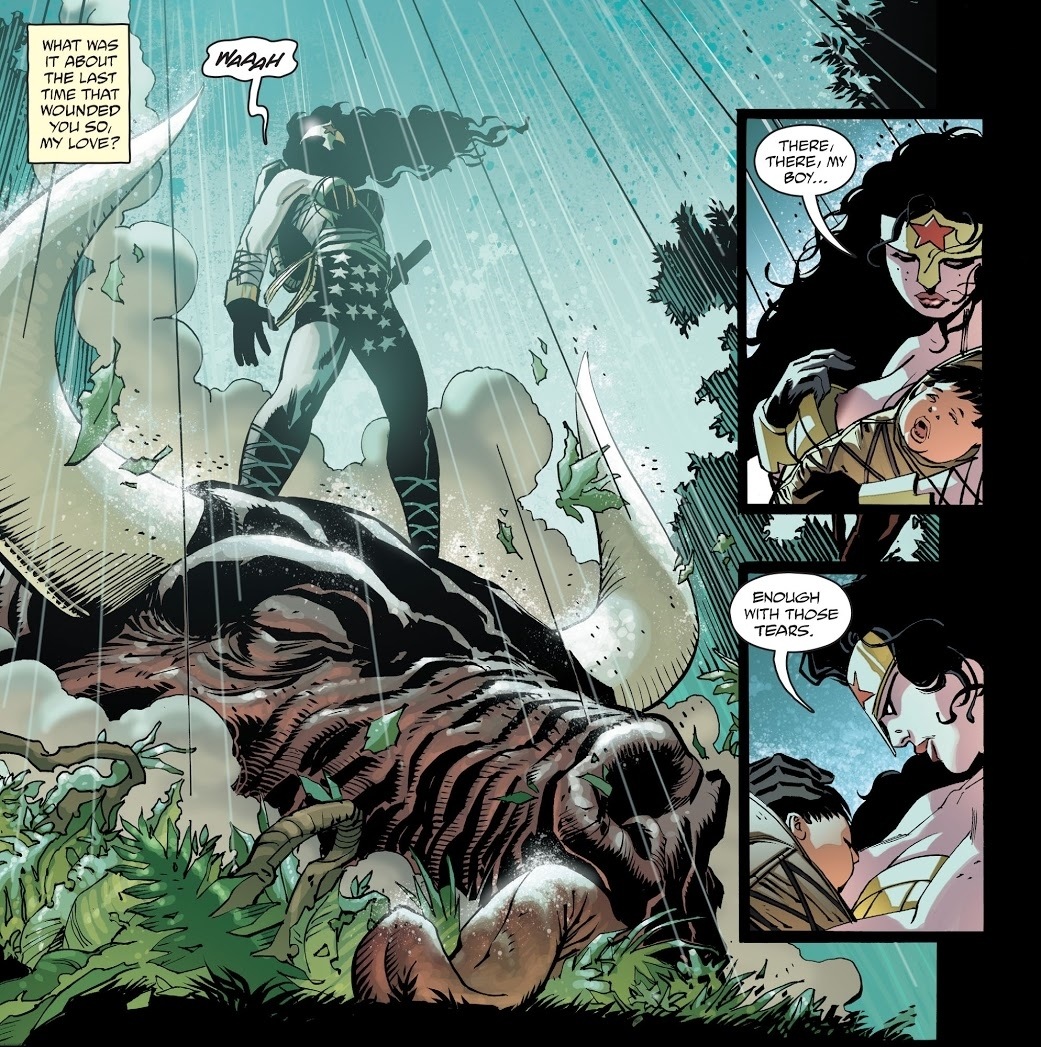 And horror of horrors, showed one of her nipples on the panel, so that Jonathan could suckle. Utterly non-sexual. But then, that was true of those scenes in Batman: Damned. So, to answer the question asked above, hardly anyone cared.