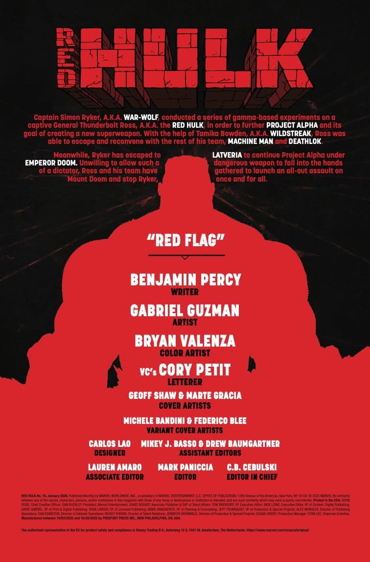 - Interior preview page from 75960620931601011 RED HULK #10 GEOFF SHAW COVER, by Benjamin Percy & Gabriel Guzman & Geoff Shaw, in stores Wednesday, November 12, 2025 from Marvel