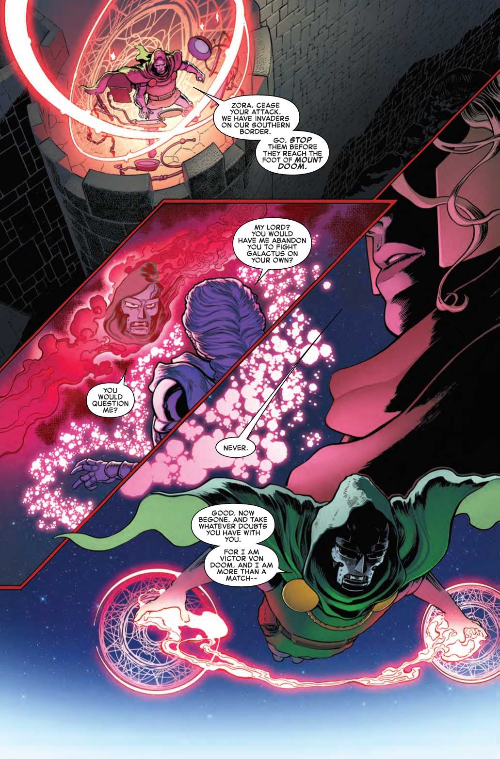 Doctor Doom has got a lot on his plate in next week's issue of Fantastic Four. Galactus is invading Latveria and it's up to Doom to stop him. And if Doom can get his hands on Galactus's power while he's at it, well, he probably wouldn't turn that down either. He is Doom, after all.