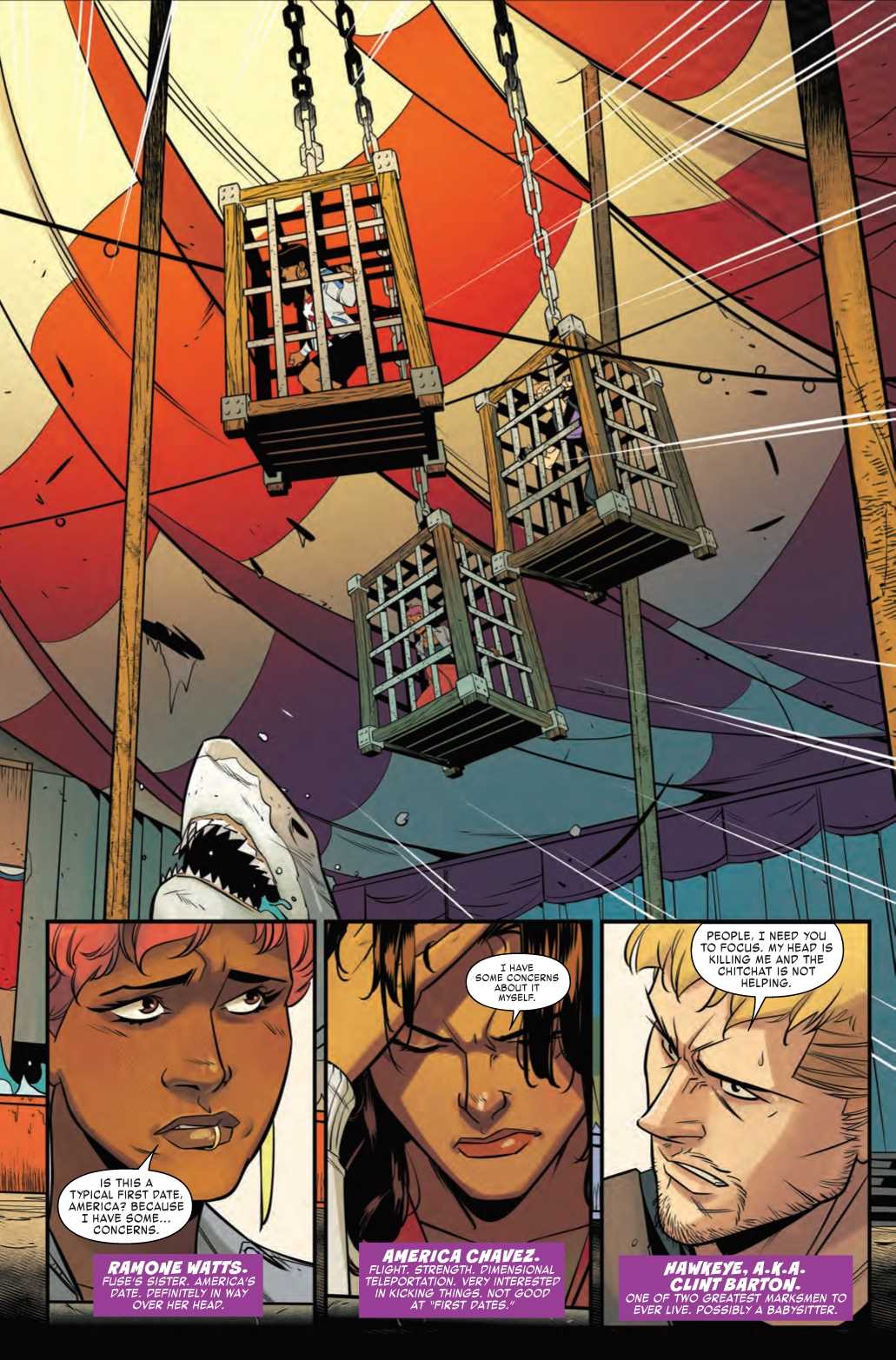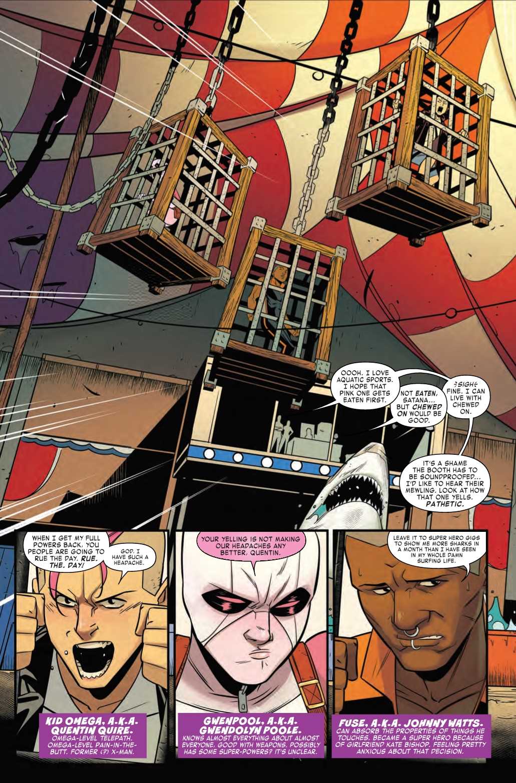 Has there ever been a team as dysfunctional as the new West Coast Avengers? In Wednesday's West Coast Avengers #6, interpersonal relationships between team members are questioned. There's Kid Omega's repeated hookups with Gwenpool, despite the pair's constant bickering. And even Fuse is questioning his decisions since starting to date Kate Bishop, as seen in this preview of the upcoming issue.