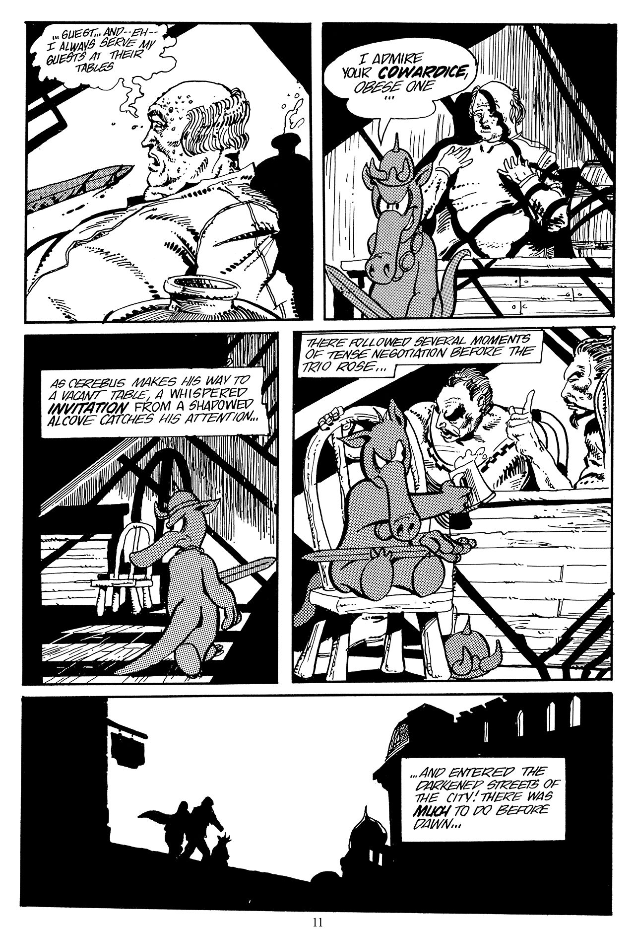 Nevertheless, Cerebus remains a fascinating comic book to read, to study, to learn from. And High Society is regarded as Cerebus as its peak, taking the world of Conan The Barbarian and imposing on it the order of politics, of civilisation, or trying to take the human condition and tame it, put a muzzle on it and saddle it. Of course, decades later, we'll discover that was all the fault of women.